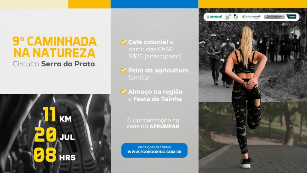 Acontece no dia 20 de julho (próximo domingo), na área rural de Paranaguá, a 9ª Caminhada na Natureza – Circuito Serra da Prata. O percurso será de 11 quilômetros, passando pelas propriedades rurais localizadas nas colônias Maria Luiza e Quintilha. Os participantes ainda vão poder conferir uma feira com produtos da agricultura familiar.