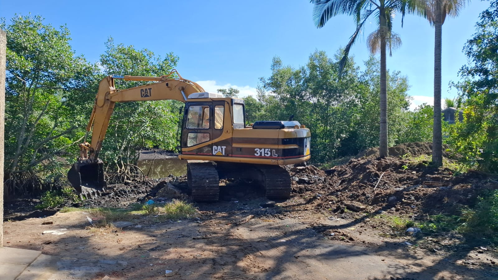 A Ilha do Mel FM acompanhou os trabalhos no final da Rua Santa Catarina, na Vila do Povo, onde uma retroescavadeira removia aterros consolidados à margem do mangue – esforço que visa interromper o avanço da degradação e preparar o terreno para ações de regeneração ambiental.