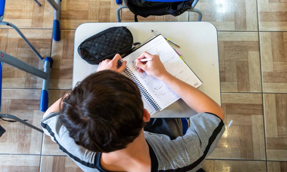 No Paraná, as redações são produzidas por meio da plataforma digital Redação Paraná, que permite que os estudantes produzam suas redações com orientação dos professores e, em muitas escolas, a atividade é incorporada como uma das avaliações do 1º trimestre. Isso garante tempo pedagógico, acompanhamento docente e maior engajamento dos estudantes no processo.