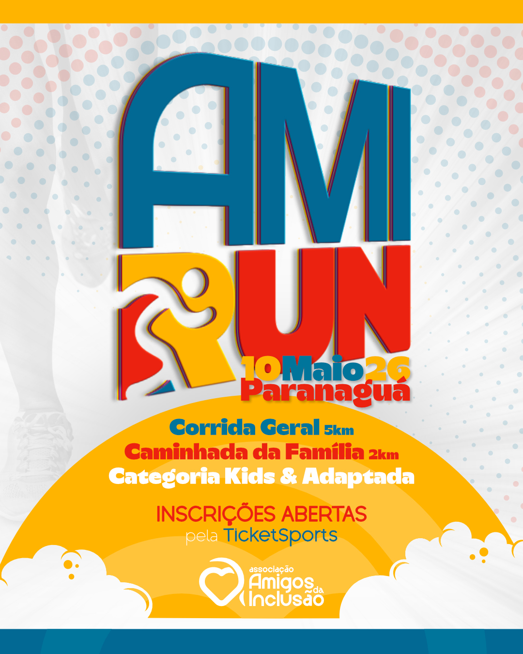 No dia 10 de maio de 2026, a solidariedade vai tomar conta das ruas de Paranaguá com a realização da AMI Run, uma corrida beneficente que une esporte, saúde e inclusão social. O evento convida atletas, corredores amadores, famílias e toda a comunidade a participarem de uma causa que transforma cada passo em visibilidade e inclusão das pessoas autistas, neurodivergentes e com deficiência do município.
