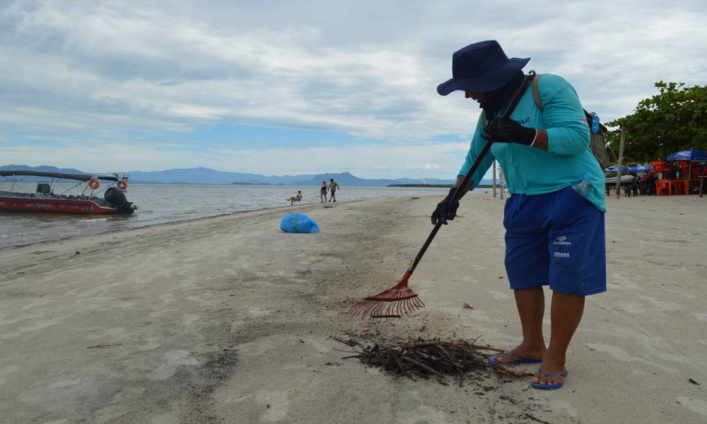 Um dos principais critérios é assegurar a segurança da fauna e da flora; outro, o bem-estar das pessoas. Primeiro, é feita a varrição na areia com restelo, para amontoar os entulhos.