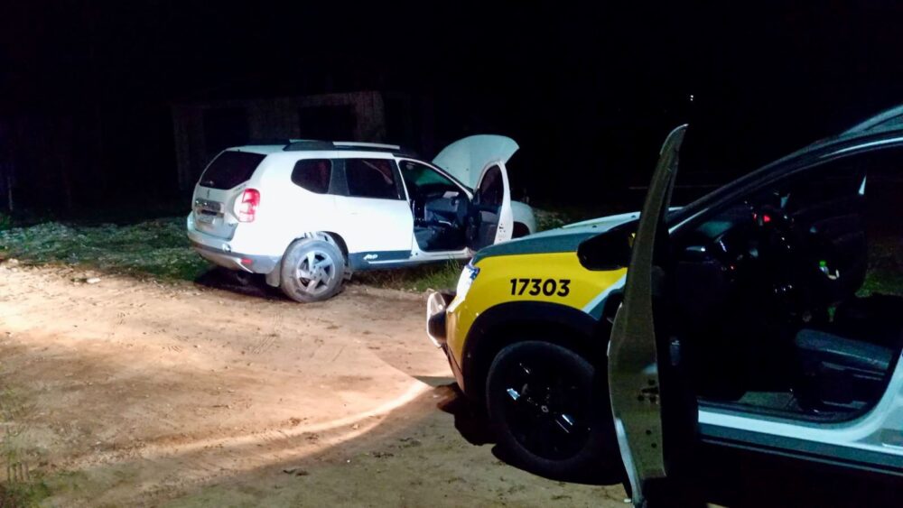 Com informações repassadas pelo sistema de rastreamento do celular, os policiais foram até o final da Rua Duque de Caxias, no bairro Mirim, onde o veículo roubado estava abandonado.