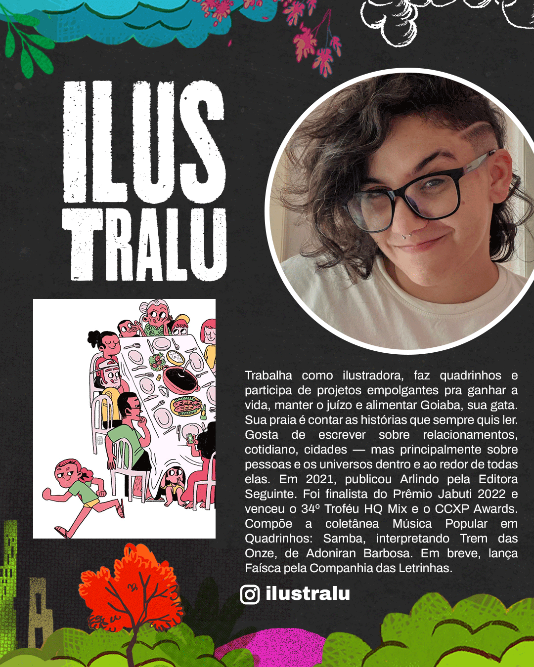 Ilustralu, autora de Arlindo, finalista do Prêmio Jabuti 2022 e vencedora do 34º Troféu HQ Mix e do CCXP Awards 2022;