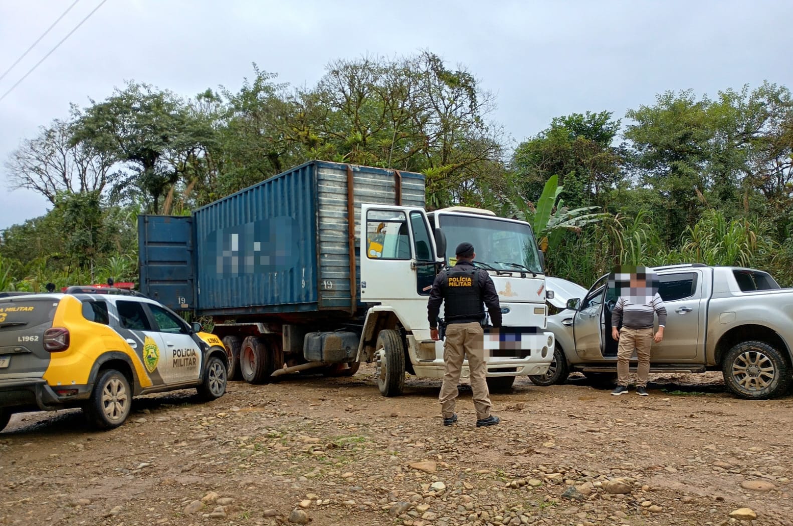 Guarnições da Polícia Militar encontraram no começo da manhã de terça-feira, 10, na zona rural de Guaraqueçaba, um caminhão com alerta de furto no sistema.