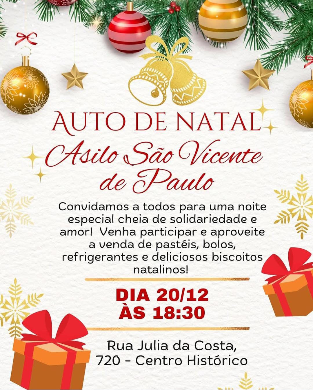 O Asilo São Vicente de Paulo, em Paranaguá, realizará a primeira edição da Cantata de Natal nesta sexta-feira, dia 20 de dezembro, a partir das 18h30. O evento acontecerá nas dependências da instituição, localizada na Rua Júlia da Costa, 720, no Centro Histórico. O evento é gratuito e a entrada será mediante a doação de 1kg de alimento não perecível ou produtos de higiene pessoal.