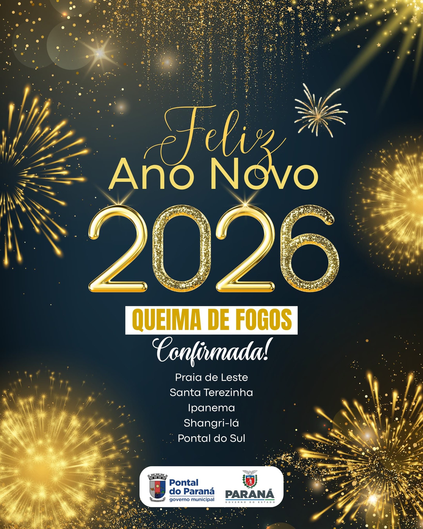 “O Réveillon 2026 já tem brilho garantido. A queima de fogos está confirmada para celebrar a chegada do novo ano em grande estilo, iluminando o nosso litoral e renovando as energias para um ano cheio de conquistas. Neste ano, o espetáculo será realizado pelo Governo do Paraná, por meio da SETU, em parceria com a AMP, reforçando a união de esforços que valoriza o turismo e os grandes momentos em Pontal do Paraná”, informou a Prefeitura de Pontal do Paraná.