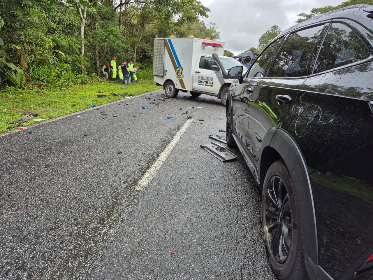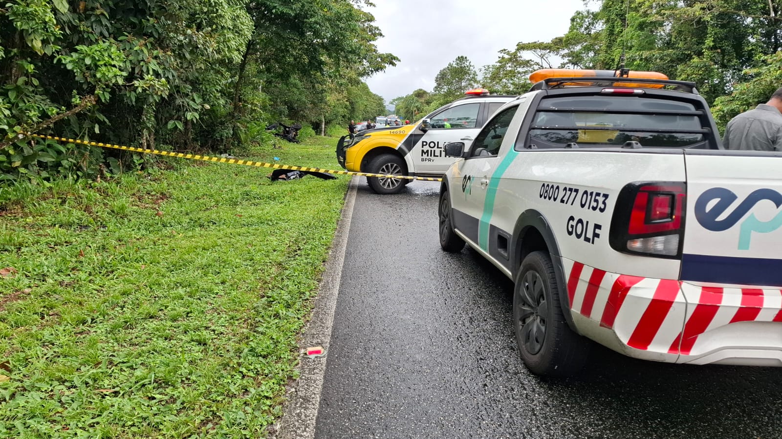 Equipes da Polícia Rodoviária Estadual, da Polícia Civil e Militar, da concessionária EPR Litoral Pioneiro, da Polícia Científica e guarnições do Corpo de Bombeiros atenderam a ocorrência.