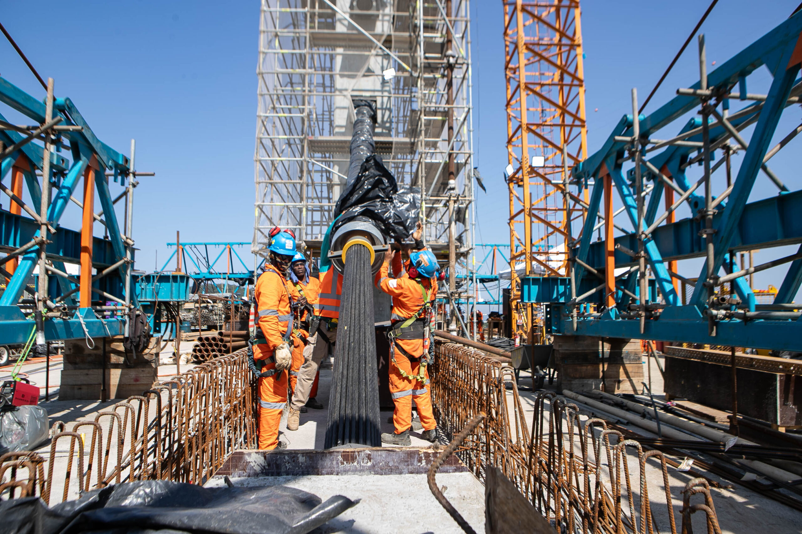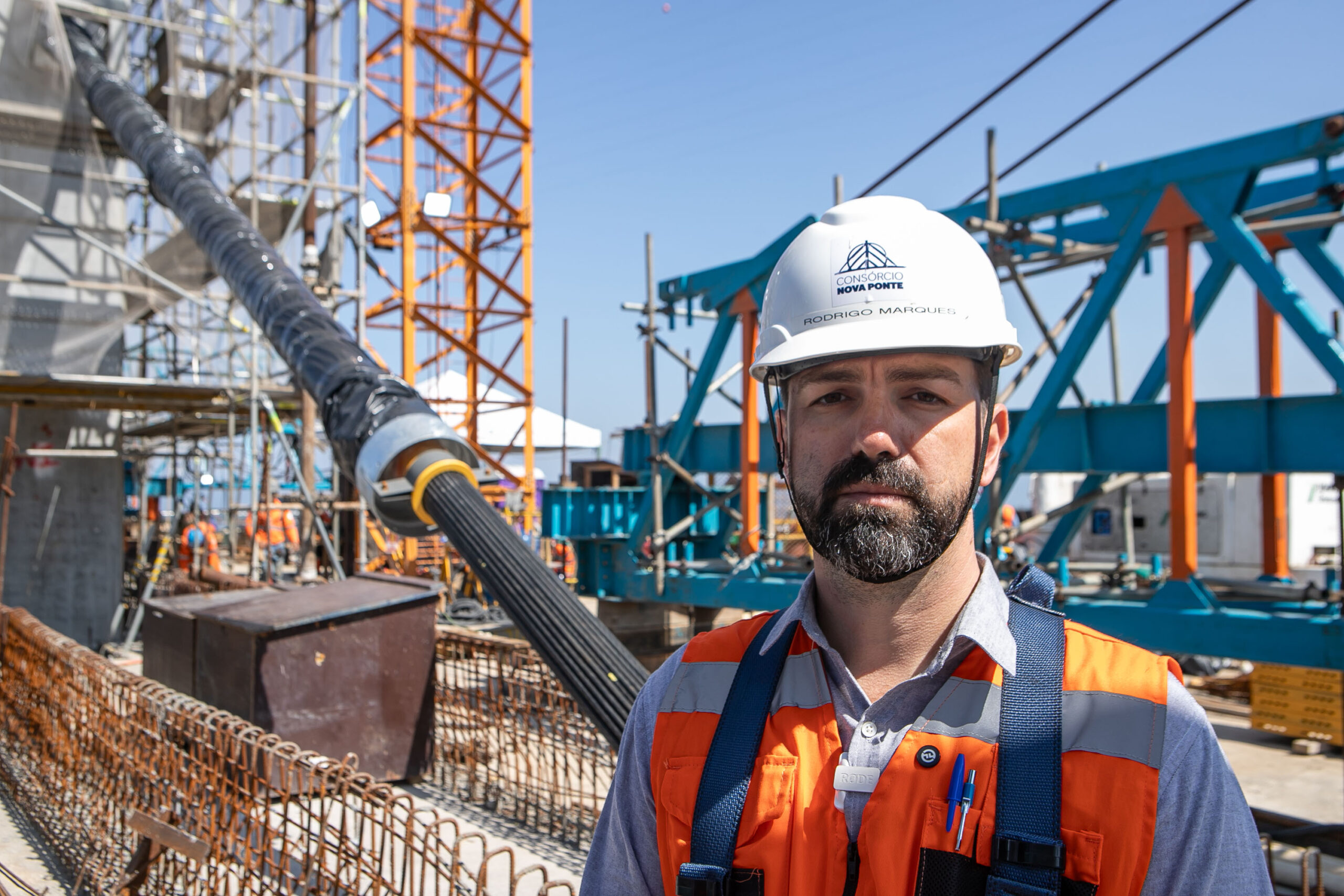 “Já instalamos o primeiro par de estais, que é o conjunto responsável por suportar o tabuleiro da ponte”, afirmou.