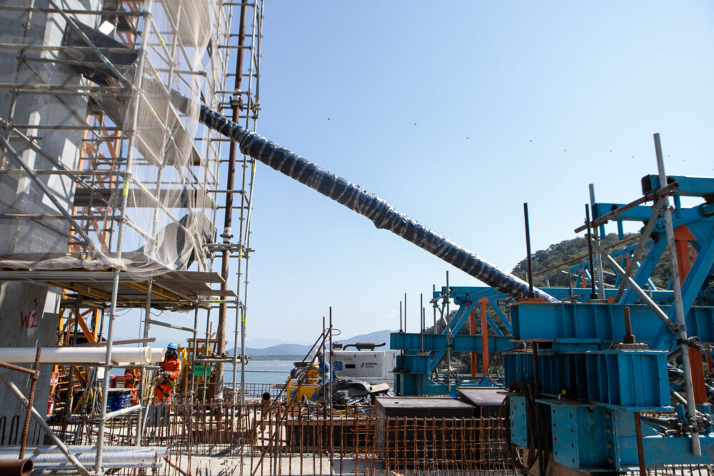 Nesta semana também foi concluída a concretagem das estacas marítimas, que compõem a fundação da ponte. Ao todo, são 64 estacas, sendo 24 no trecho estaiado. O processo exigiu soluções específicas devido às condições geológicas e à influência das marés na Baía de Guaratuba.