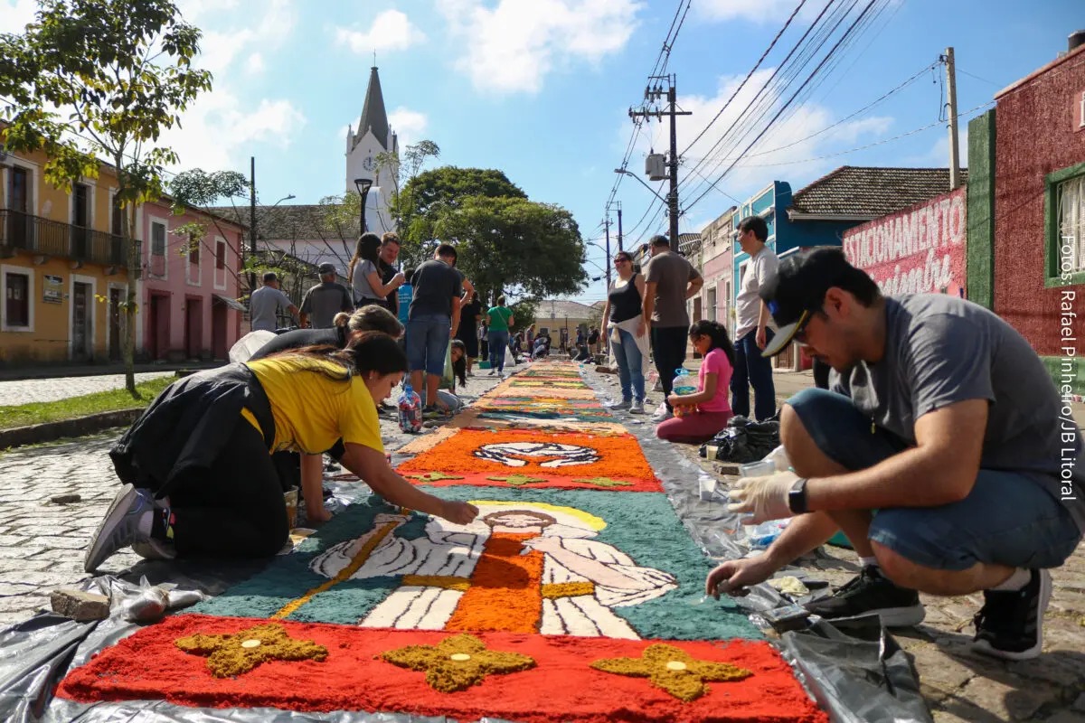 A comunidade católica de Paranaguá se prepara para celebrar nesta quinta-feira (19) uma das festas mais importantes do calendário religioso: o Corpus Christi. A data, que exalta a presença real de Jesus Cristo na Eucaristia, será marcada por missas solenes, procissões e a tradicional confecção de tapetes coloridos nas ruas da cidade.