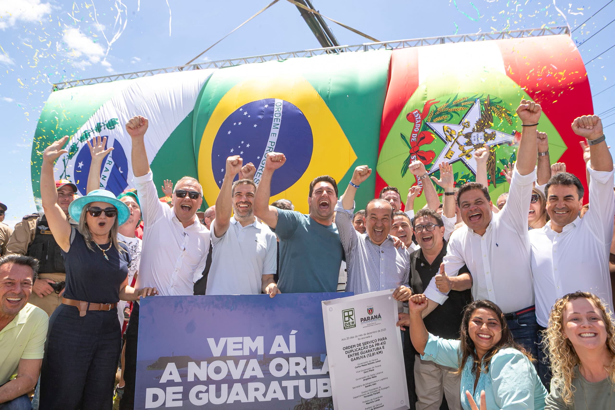 O governador Carlos Massa Ratinho Junior assinou neste sábado (20) a ordem de serviço para a duplicação da PR-412, no trecho entre Guaratuba, no Litoral do Paraná, e Garuva, na divisa com Santa Catarina. Com investimento previsto de R$ 254,5 milhões, a obra atende a uma demanda histórica da população e marca um novo capítulo para a mobilidade, o turismo e o desenvolvimento econômico da região, além de fortalecer a integração logística entre os dois estados.
