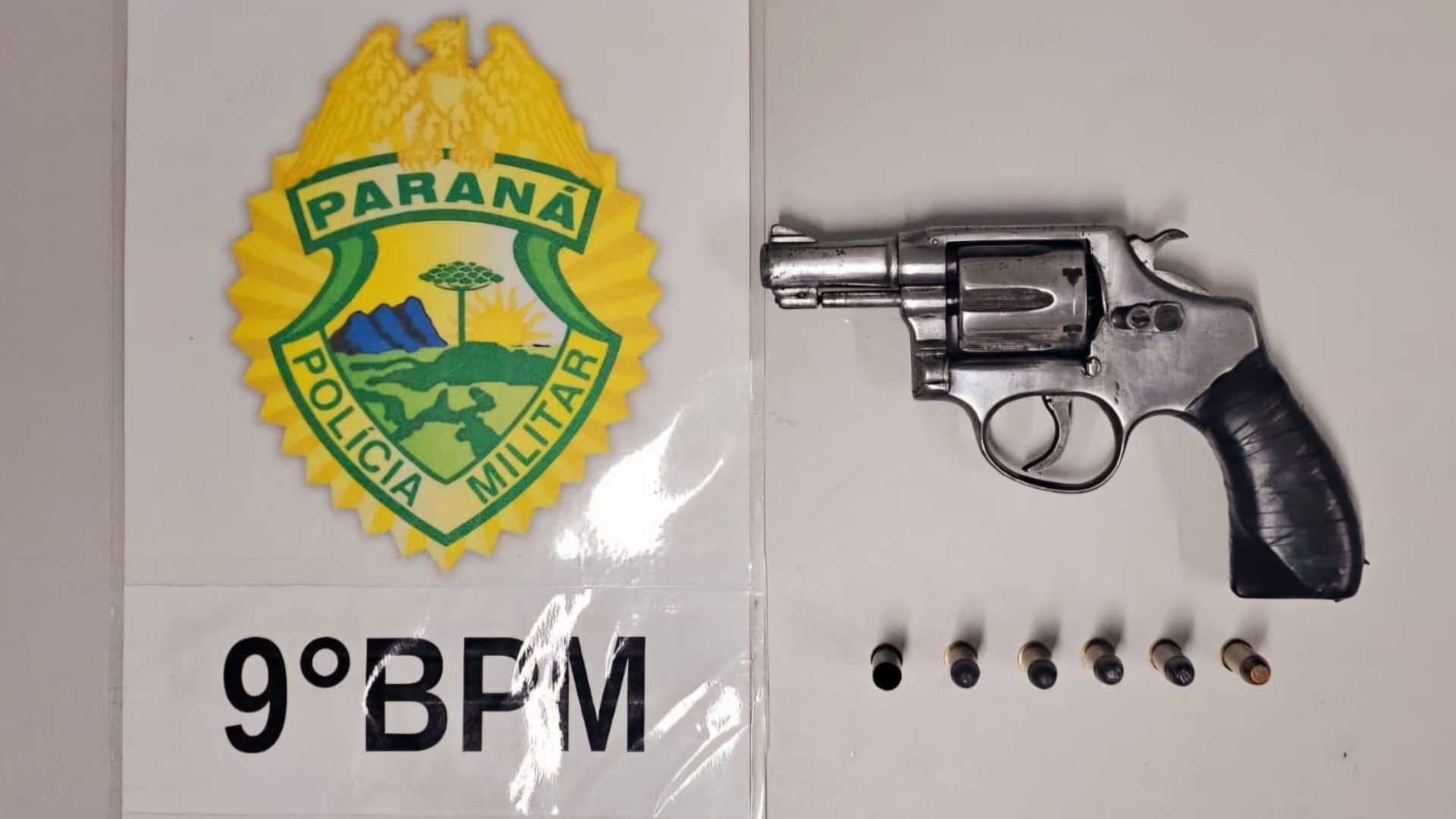 Durante o procedimento, homem, de 42 anos, disse que guardava uma arma para o cunhado. O revólver calibre 38, com cinco munições intactas e uma deflagrada foi encontrado dentro de uma calha, nos fundos da casa.