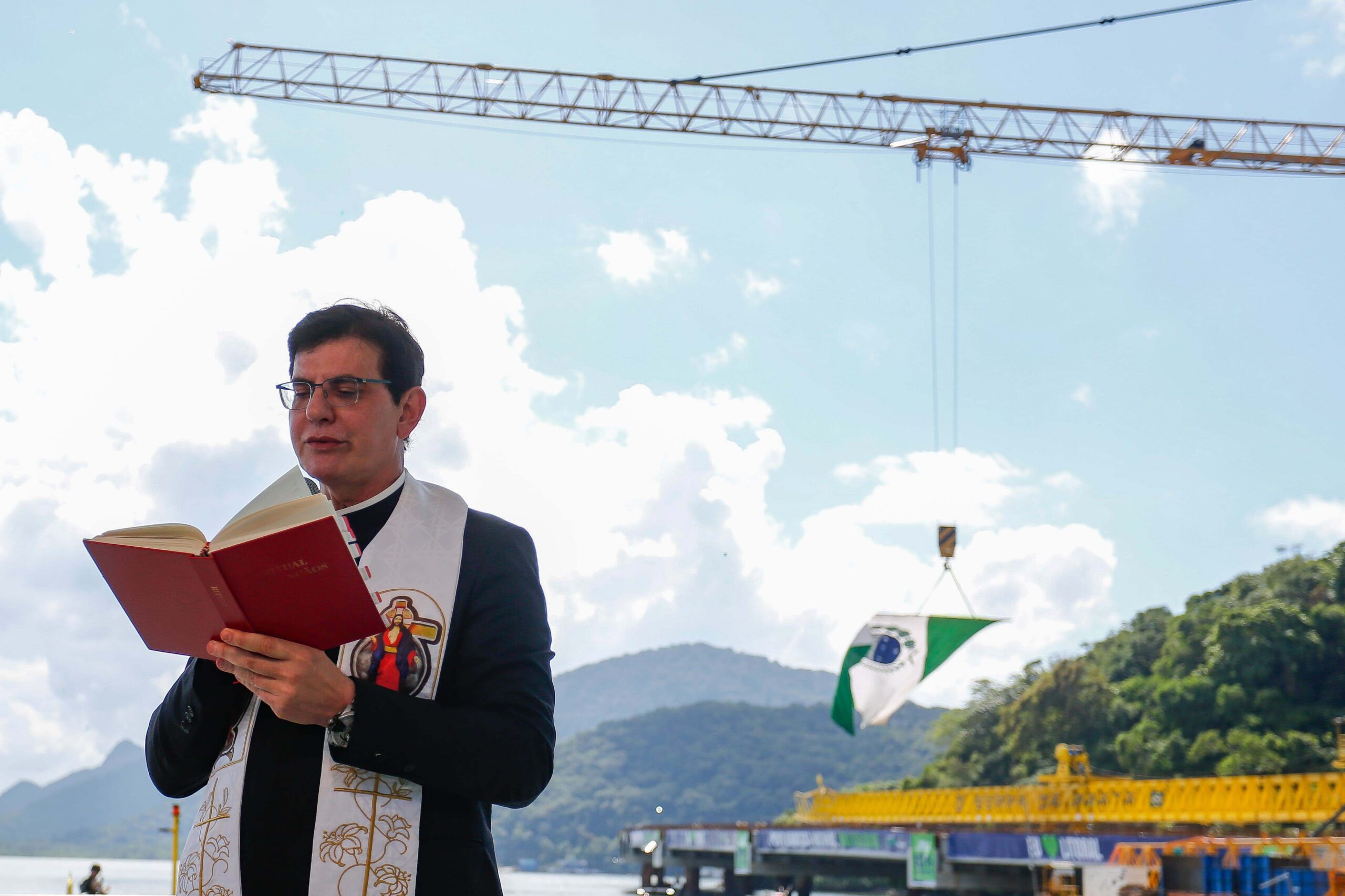 Durante a visita do governador, a obra também recebeu uma benção do padre Reginaldo Manzotti. A ponte é aguardada há décadas por moradores do Litoral e turistas. A previsão é que a obra esteja concluída em abril de 2026.