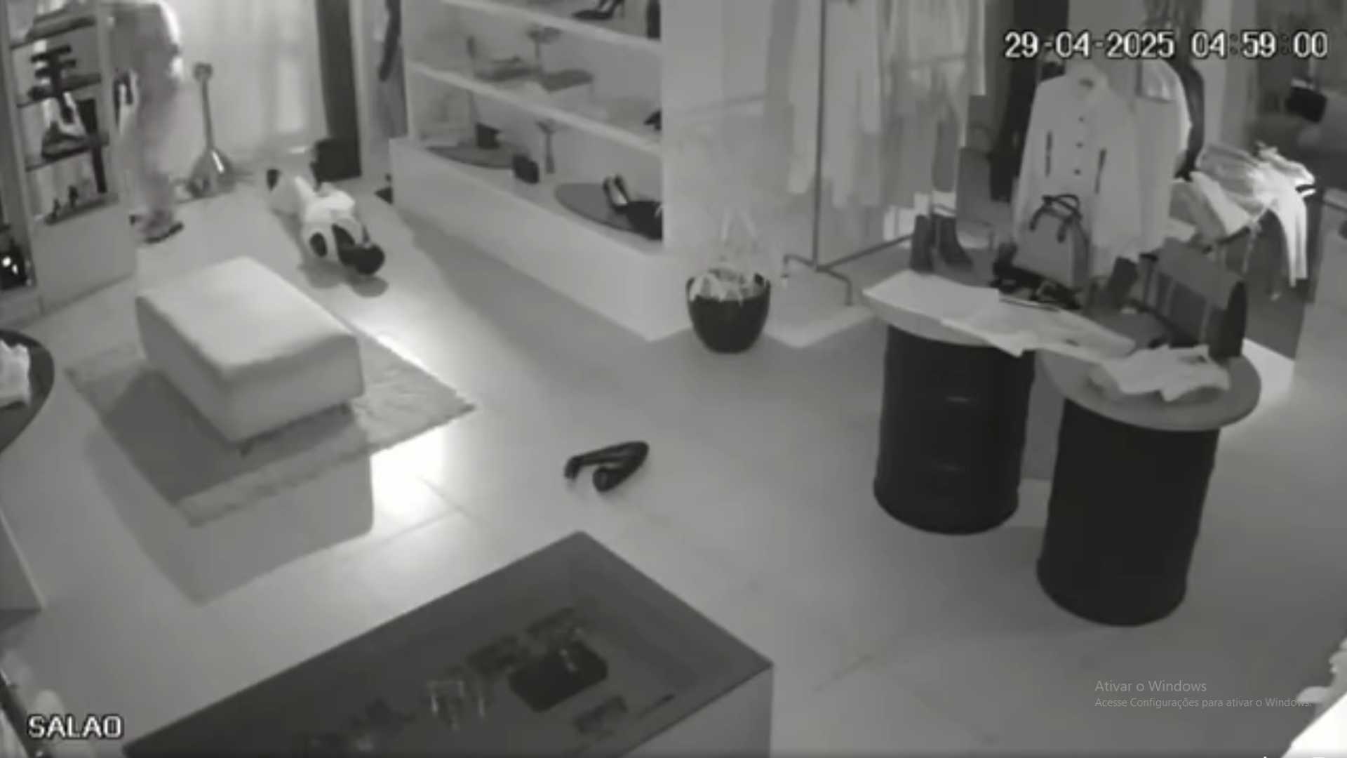 As imagens mostram o momento em que os suspeitos quebram o vidro da vitrine com uma pedra. Após derrubar um manequim, que estava na entrada, um dos criminosos invade a loja. O criminoso caminha pelo salão e pega várias mercadorias, entre elas, pares de tênis, acessórios, peças de roupas masculinas e femininas, e uma bolsa. Logo em seguida, ele foge com o comparsa.