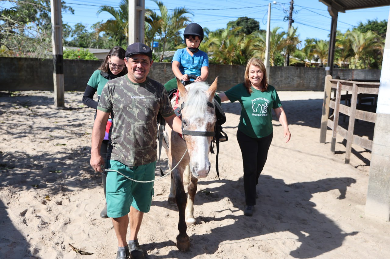 O atendimento acontece no Centro de Equoterapia da Escola Municipal Ilha do Saber, em Pontal do Paraná, e já beneficia cerca de 50 alunos com ganhos físicos, emocionais e sociais.