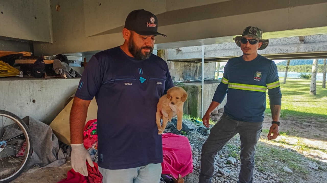 Durante a operação, foram abordadas três pessoas em situação de rua, que receberam orientação para buscar acolhimento no Centro POP. Três cães também foram resgatados — um deles em situação crítica, com sinais de verminose e sufocamento. A GCM atuou com patrulhamento preventivo. “Durante a ação, foi feita uma abordagem a um homem que mantinha diversos pertences sob a ponte. Não houve prisões, mas todos foram orientados a não ocupar novamente o espaço público e buscar apoio nos serviços sociais disponíveis”, explicou o guarda Aldemis Crespim dos Santos Junior.