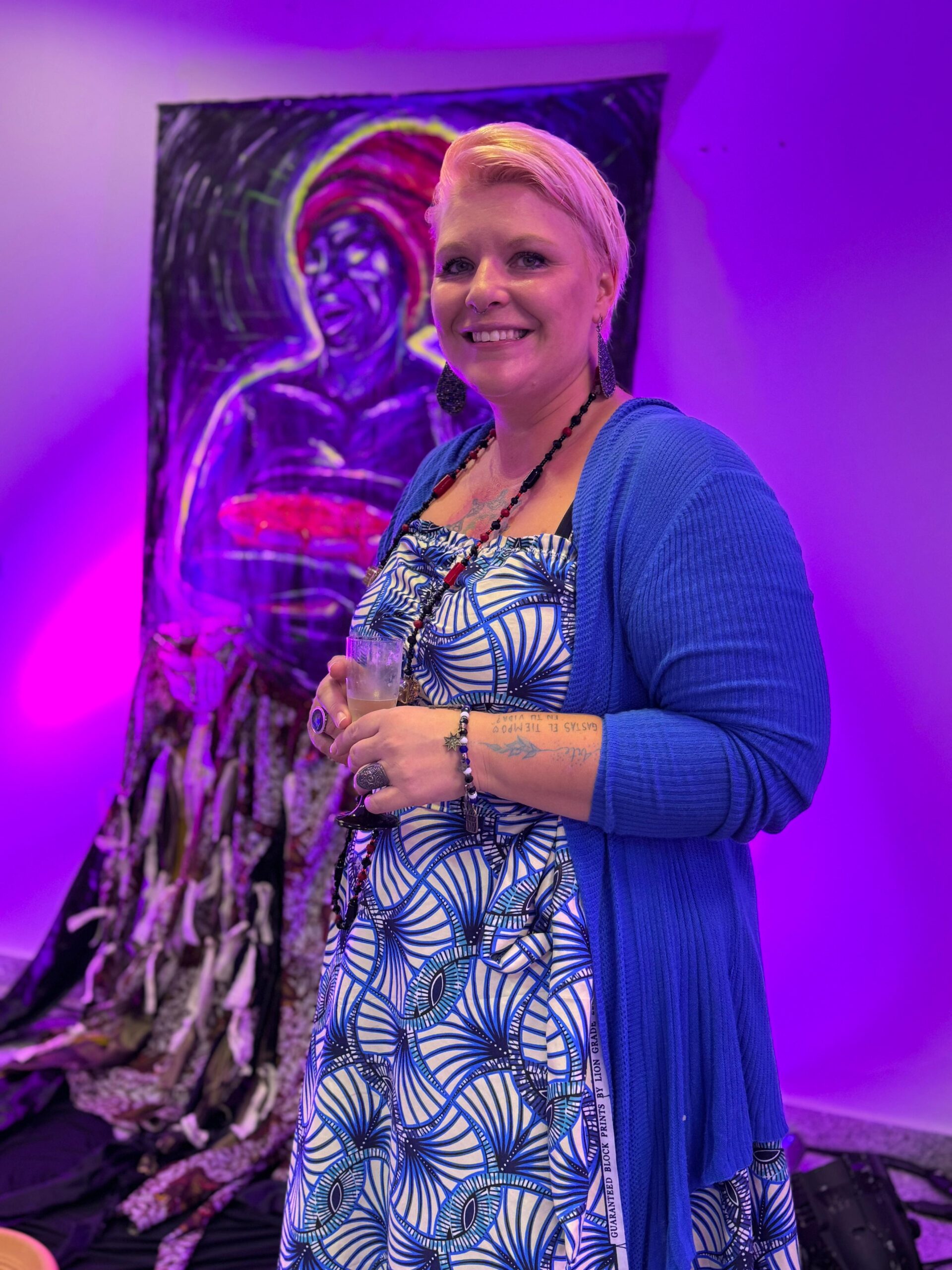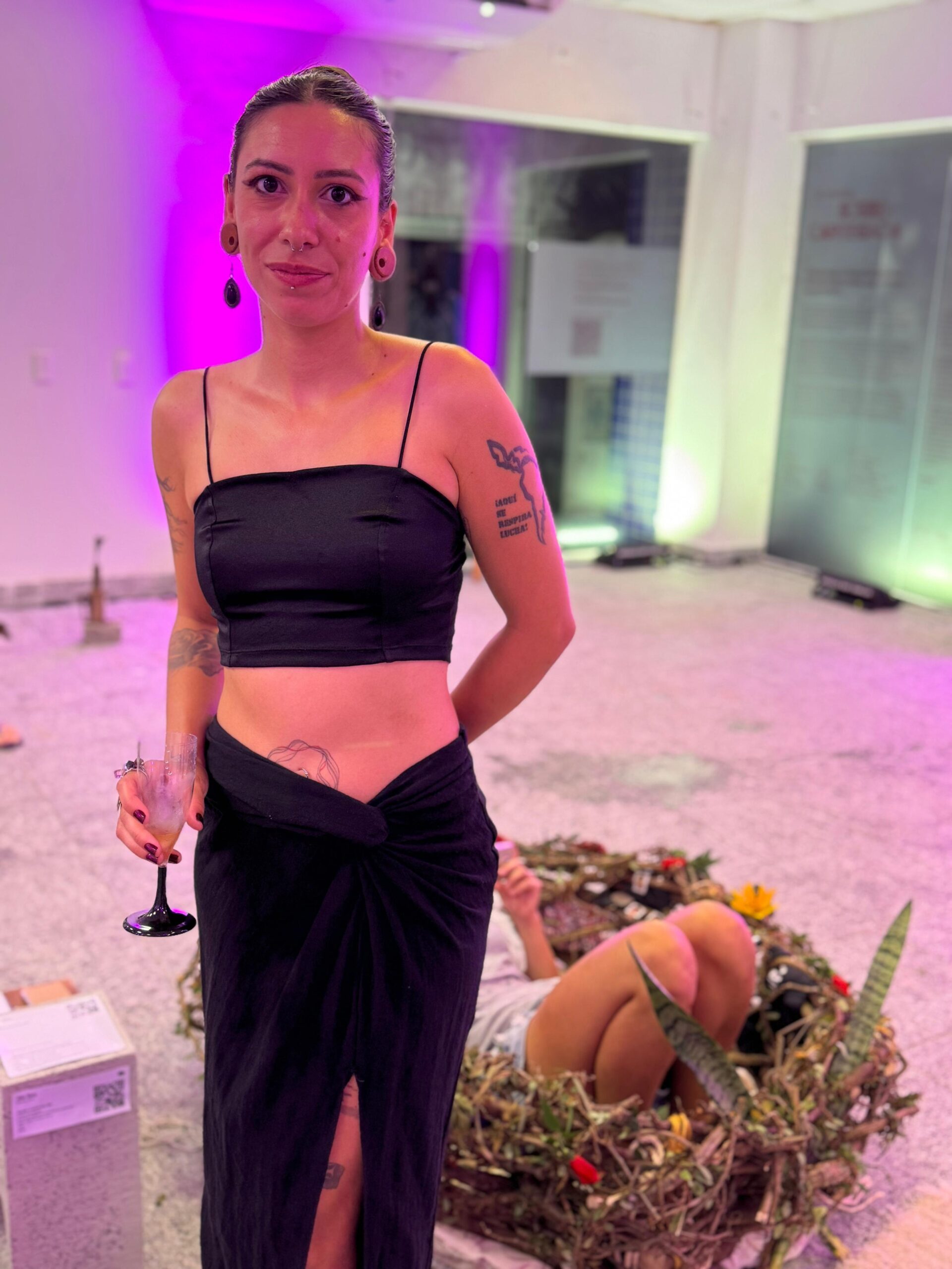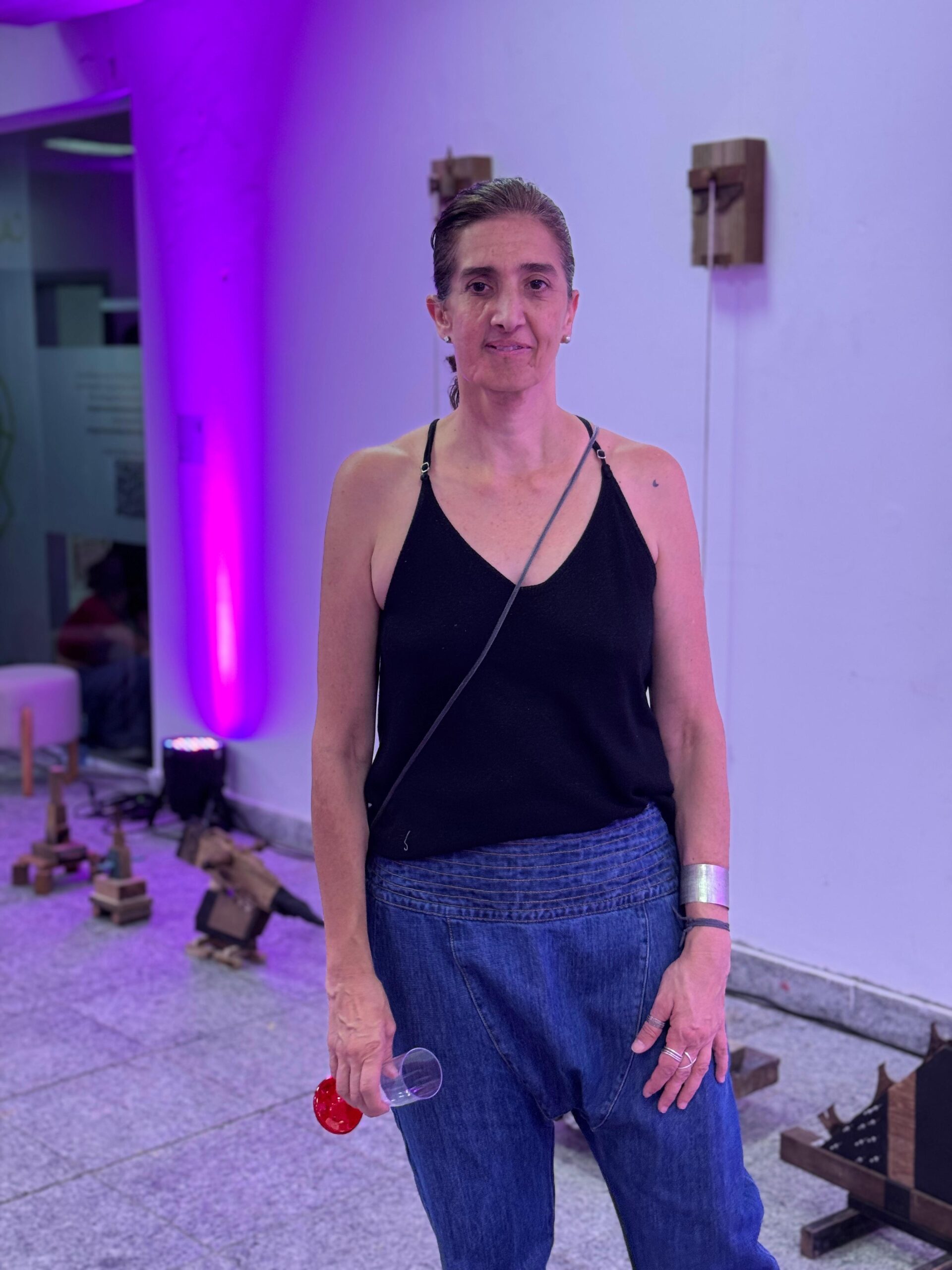 Mila Gouveia, ialorixá e artista plástica, apresenta uma escultura de Exu Bará, numa representação que confronta o racismo religioso e valoriza a espiritualidade afro-brasileira. “Hoje, em vez de descarregar os outros, eu me descarrego como artista. Exu é transformação — e agora ele protege a mostra”, declara.