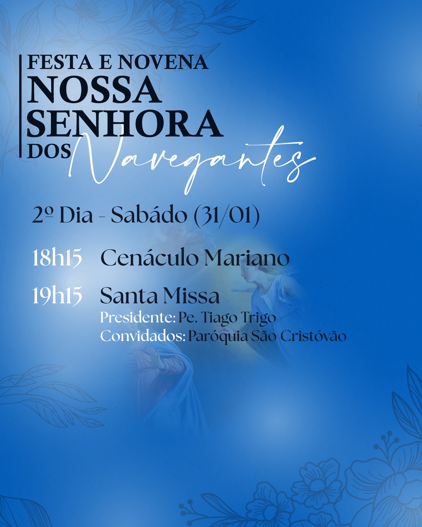 O novenário tem início nesta sexta-feira e segue até o dia 7 de fevereiro, sempre às 19h15. Após a novena, a partir das 23h30, acontece a quermesse, que segue até a meia-noite.