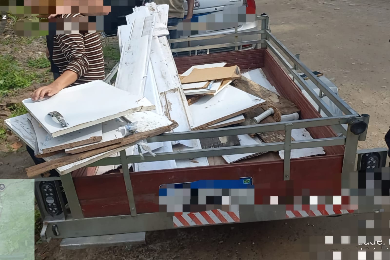 A guarnição realizava patrulhamento de rotina pela Colônia São Luís e Quintilha, quando a equipe visualizou os ocupantes de um Fiat Palio, cor prata, com uma carretinha acoplada, depositando irregularmente resíduos sólidos em uma área de mata fechada e perto de um córrego.
