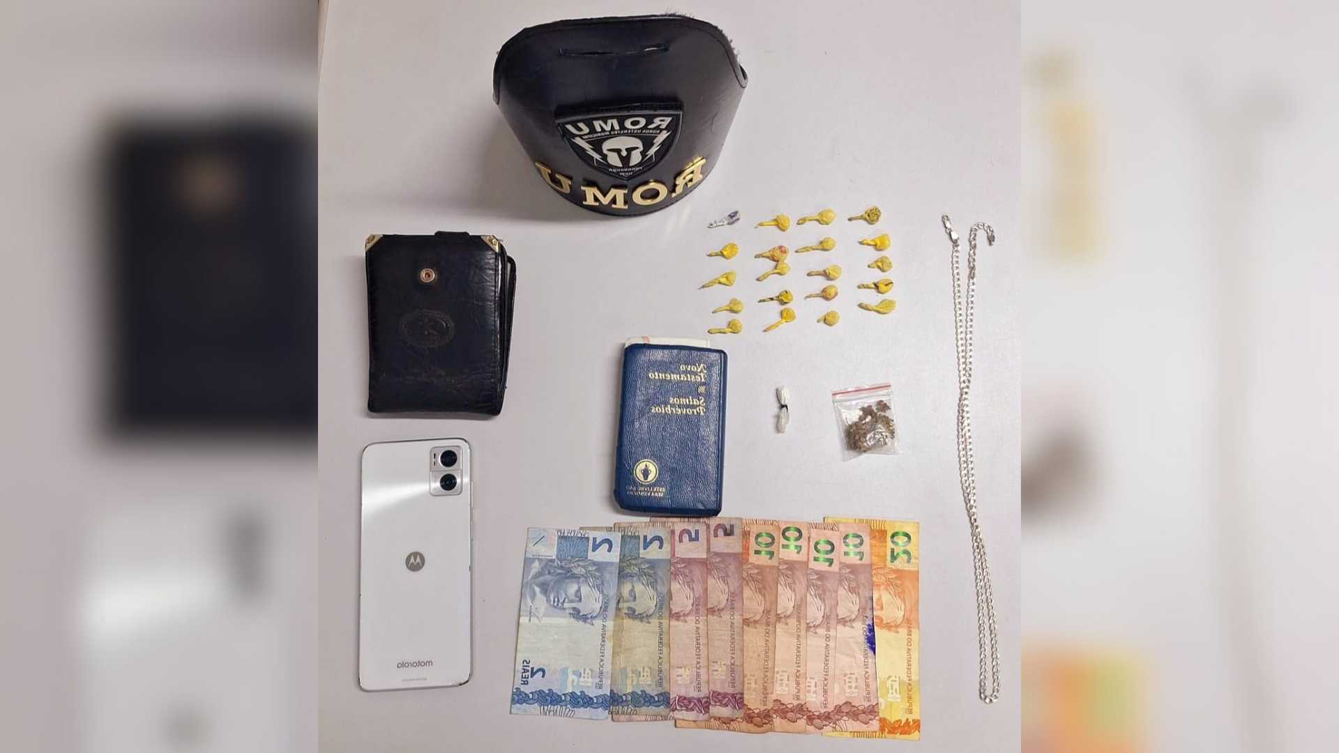 A viatura trafegava por um trecho da Avenida Belmiro Sebastião Marques quando os agentes receberam informações sobre um indivíduo que estaria comercializando entorpecentes na região.