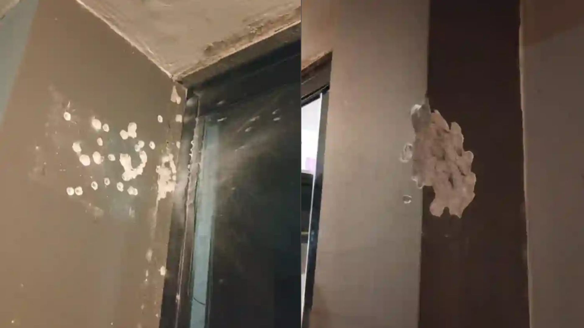 Os disparos atingiram as paredes do prédio.