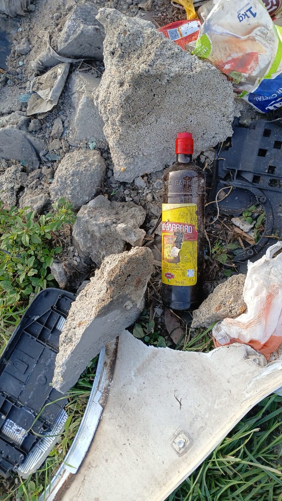 Garrafas de cachaça e latas de cerveja vazias foram encontradas dentro da cabine do caminhão.