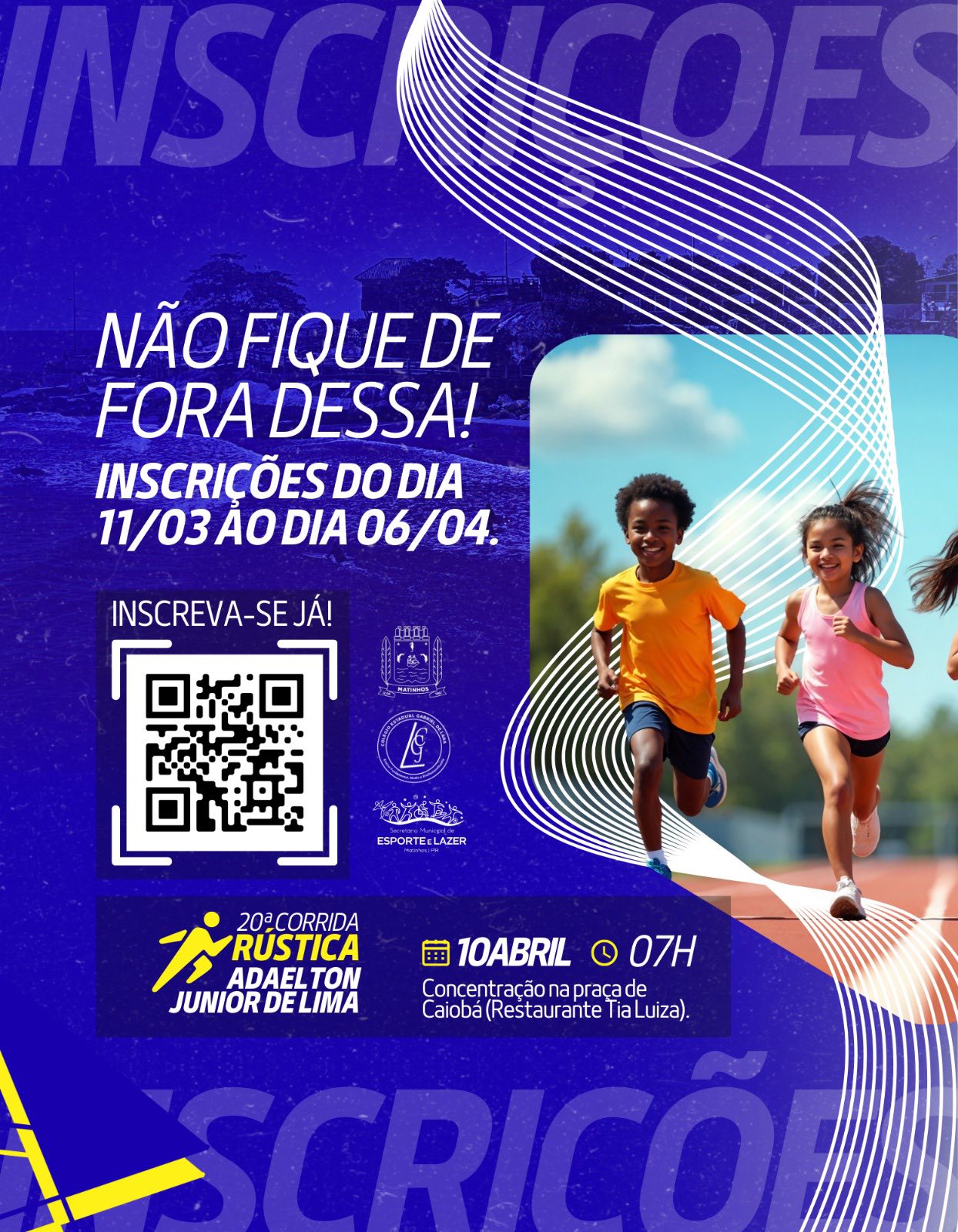 As inscrições já estão abertas e seguem até o dia 6 de abril. Os interessados podem se inscrever por meio deste link: https://forms.gle/adHXJc6p32qRMRVY9, ou então pelo QR Code disponível nos materiais oficiais, além dos canais da Secretaria de Esporte e Lazer de Matinhos.