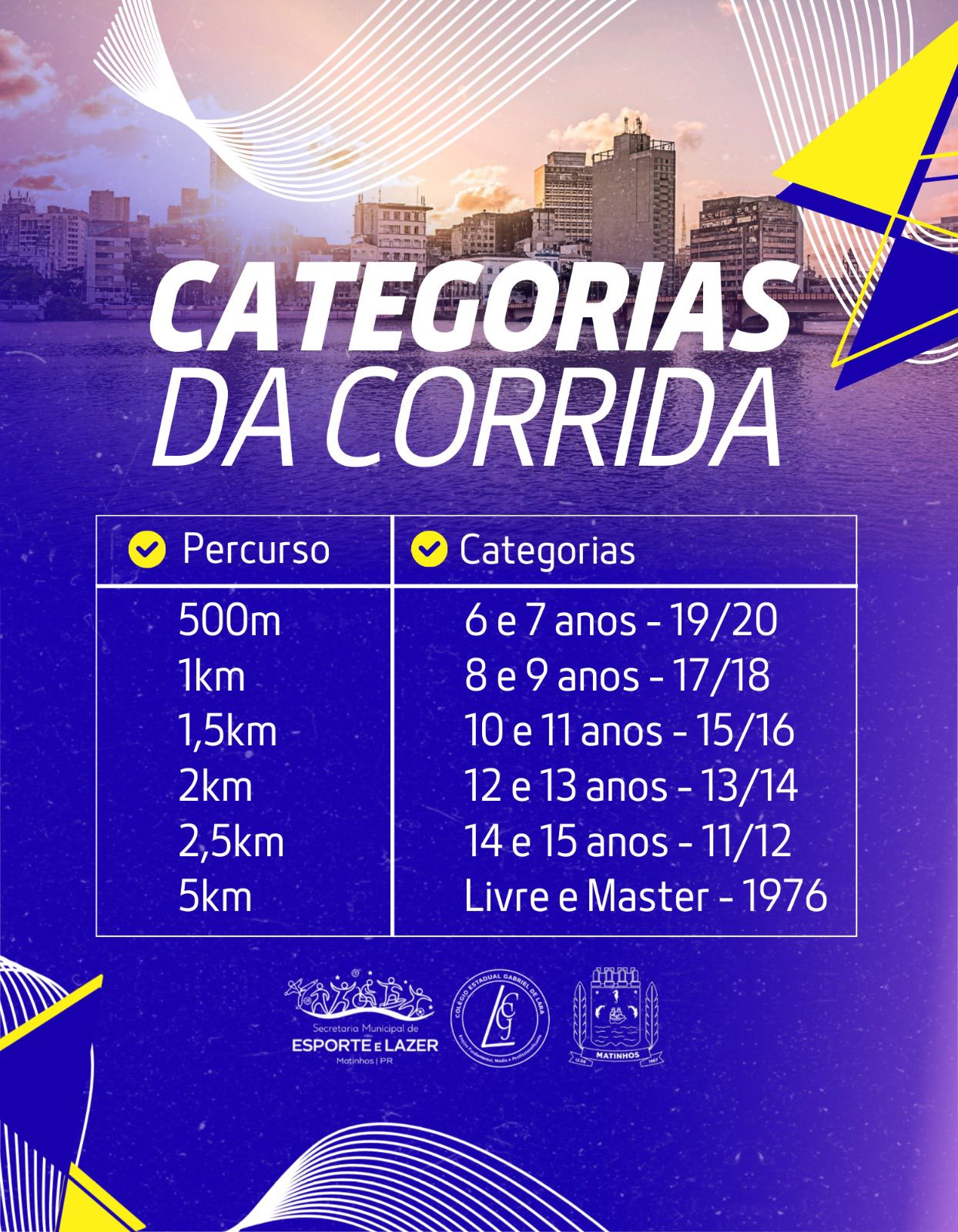 A corrida contempla diversas faixas etárias, desde crianças até atletas da categoria Master, com percursos adaptados: