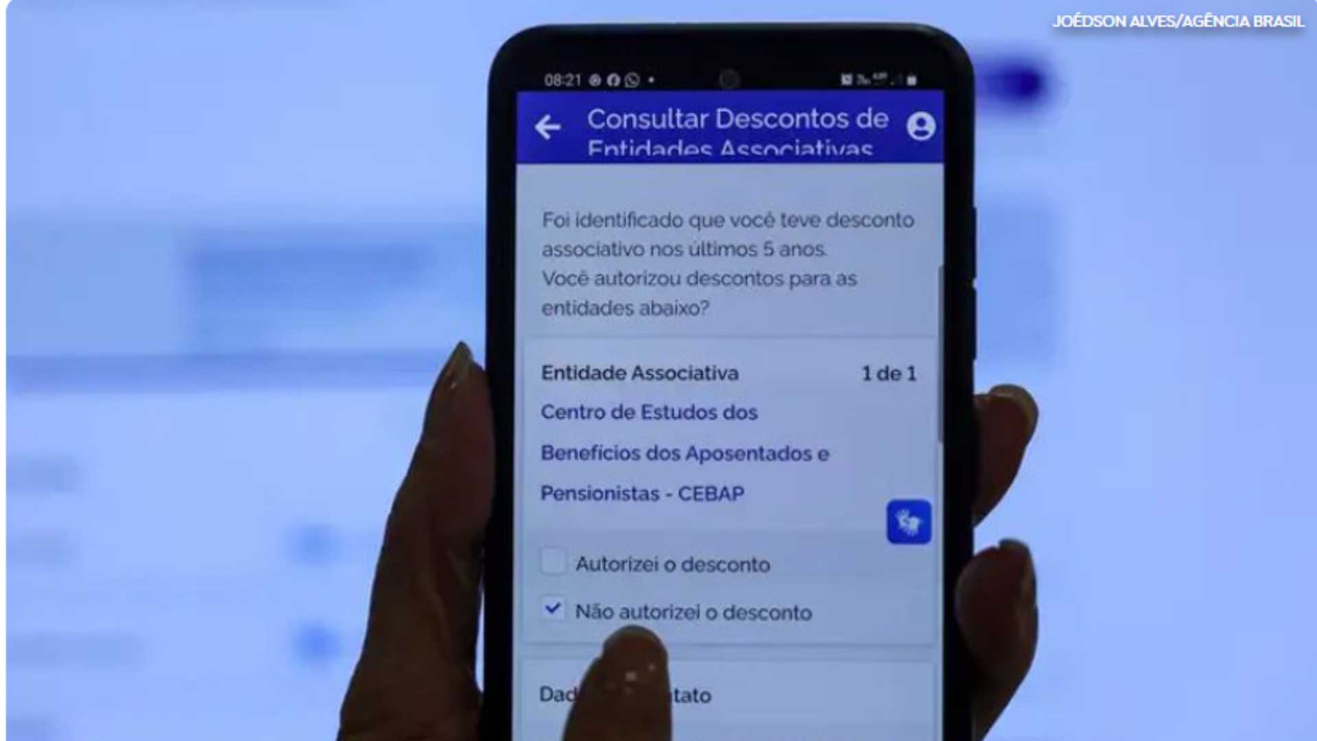 Desde a quarta-feira (14) é possível confirmar se o desconto associativo identificado em seu benefício foi autorizado ou não. Basta acessar o aplicativo ou o site Meu INSS, com seu CPF e senha e clicar no serviço “Consultar Descontos de Entidades Associativas”. O aplicativo exibirá o nome da entidade e, também, as opções para que o aposentado ou pensionista possa informar se autorizou, de fato, o débito.