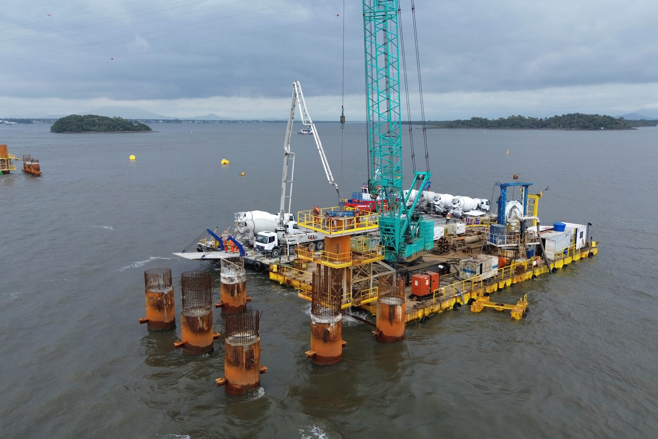 “Esse trecho foi emblemático devido à complexidade das fundações, que demandaram estacas de grande porte e exigiram soluções técnicas frente à forte influência das marés e às variações climáticas. Ainda assim, com planejamento, precisão e atuação integrada das equipes, concluímos com êxito mais uma fase fundamental da construção”, destacou.