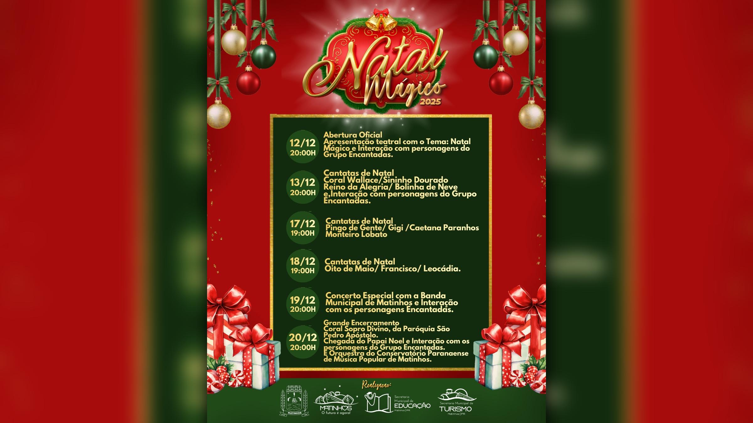 A programação, promovida pela Prefeitura de Matinhos em parceria com as Secretarias de Educação e Turismo, segue até 20 de dezembro e promete envolver a comunidade em apresentações artísticas e culturais preparadas especialmente para o período natalino.