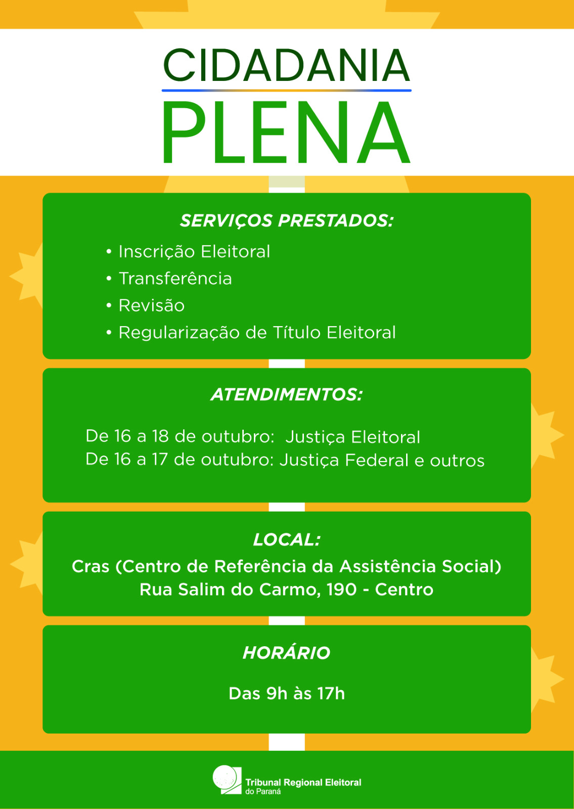 De 16 a 18 de outubro: atendimentos da Justiça Eleitoral