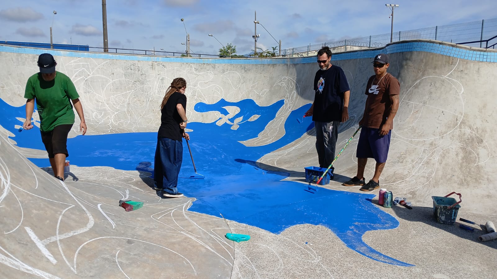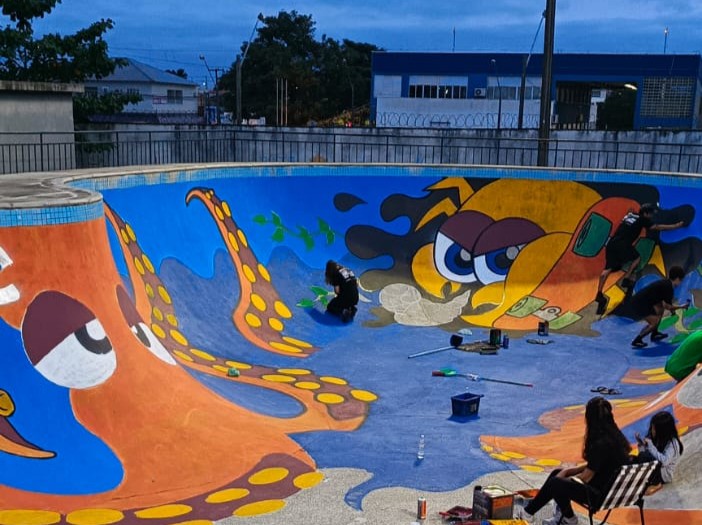 No período da tarde, o foco foi a pintura artística do bowl – obstáculo em formato de piscina usado para manobras mais avançadas. O local, que já era referência entre skatistas da cidade, agora também se destaca como uma galeria a céu aberto da arte urbana parnanguara.