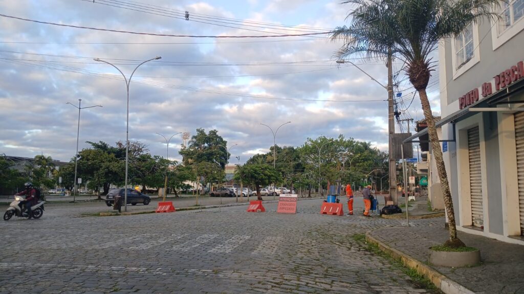 A Prefeitura de Paranaguá, por meio das Secretarias de Obras Públicas (Semop) e Segurança (Semseg), informa que, devido às obras de readequação do calçamento nas ruas João Régis e General Carneiro, foram feitas mudanças temporárias no fluxo viário da região central da cidade. Além disso, o conjunto semafórico do cruzamento permanece inativo para execução dos serviços.