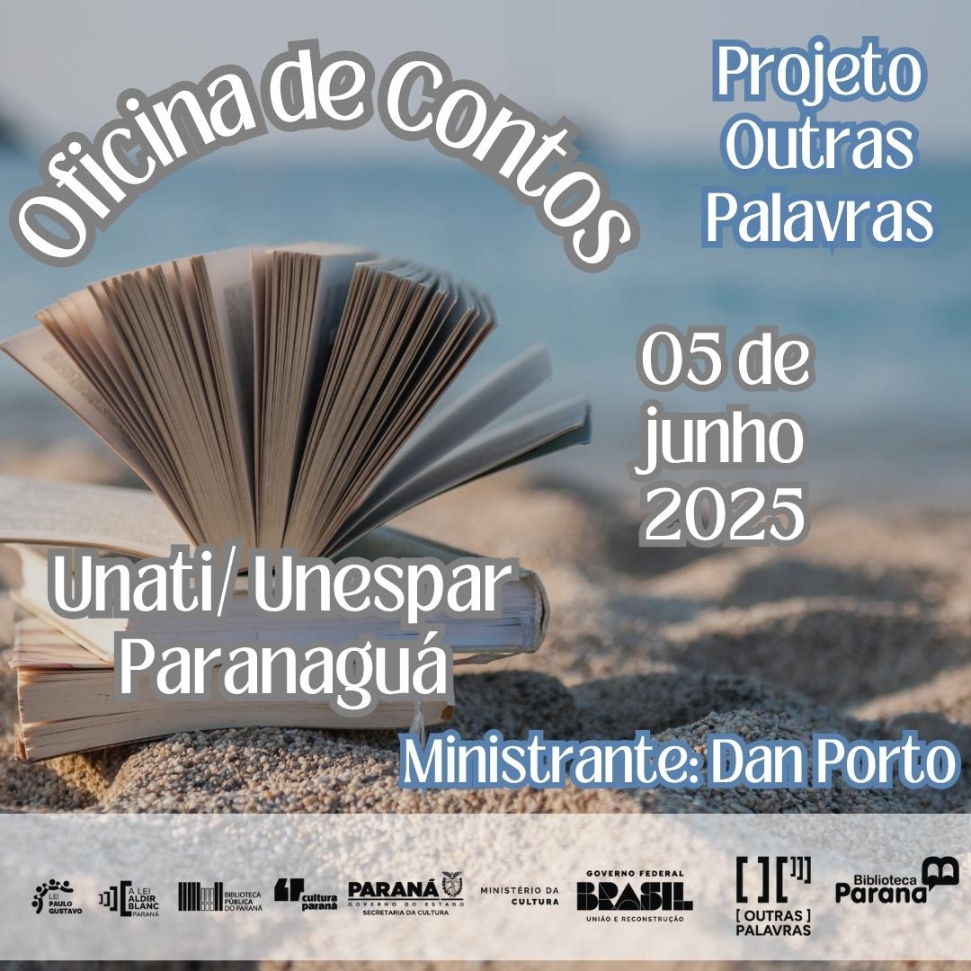 Como parte das ações de contrapartida do projeto “Outras Palavras”, aprovado no Edital 005/2020 da Secretaria de Estado da Cultura do Paraná, a editora independente Anadara brasiliana edições realiza em 05 de junho , das 14 as 16 hs, a Oficina de Contos e Memórias, ministrado por Dan Porto, na sede da Unespar – Campus Paranaguá, voltada especialmente às pessoas idosas que participam das atividades da Unati – Universidade Aberta da Terceira Idade.