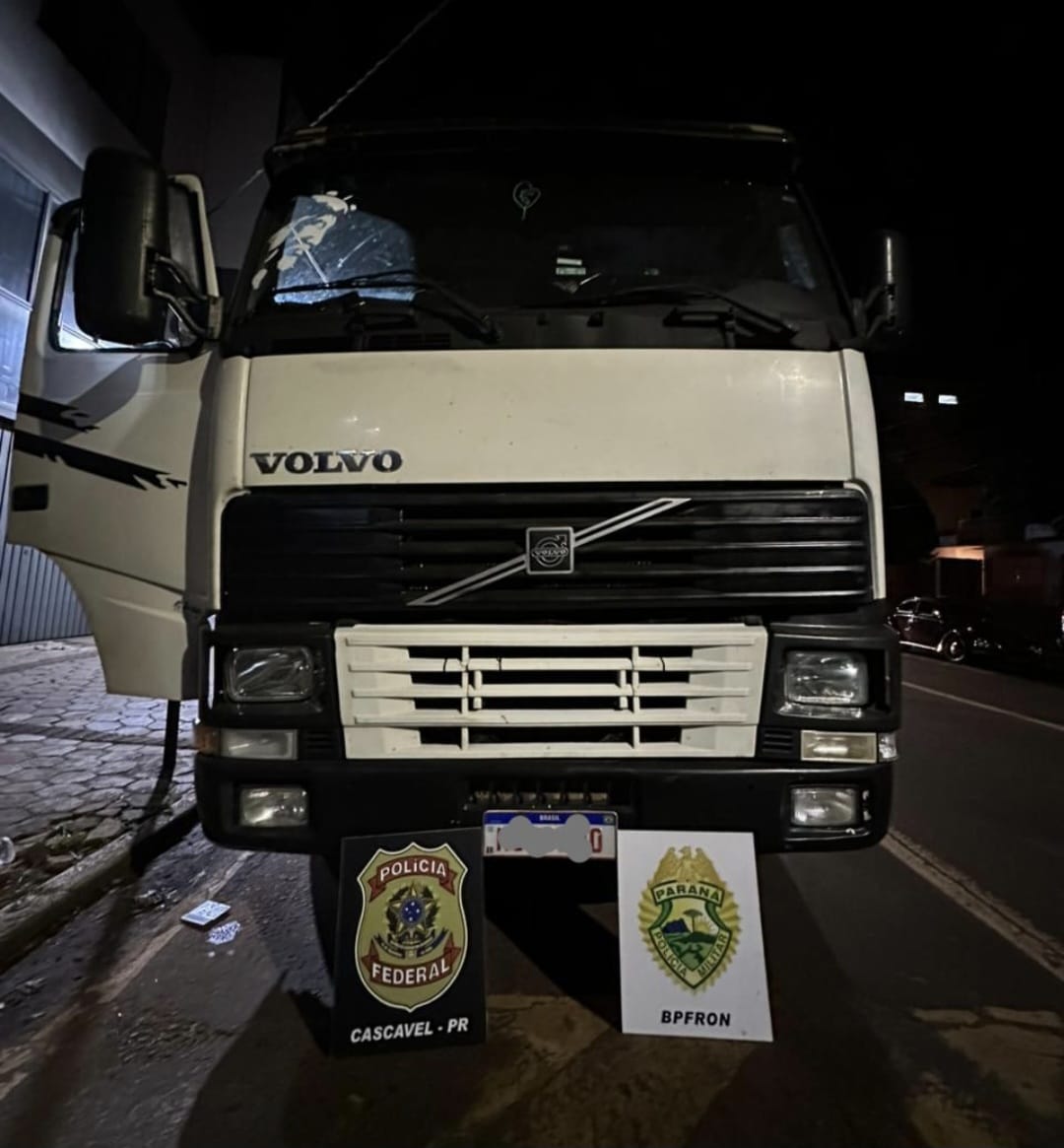 As forças de segurança receberam informações sobre um possível transporte de entorpecentes e, durante patrulhamento, visualizaram um caminhão Volvo FH adentrando o pátio de um posto de combustíveis na BR-467.
