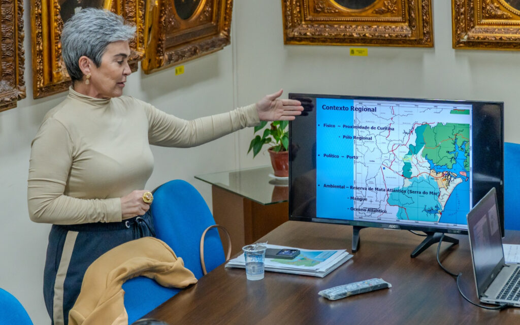 A Prefeitura de Paranaguá apresentou nesta terça-feira, 15 de julho, a proposta de atualização do Plano Diretor do município durante reunião na Câmara Municipal. A explanação foi feita pela secretária de Planejamento e Gestão (Semplog), Vania Foes, aos vereadores da cidade, como parte de um ciclo de escutas iniciado há cerca de três meses. O encontro foi conduzido pelo presidente da Casa, vereador Adalberto Araújo.