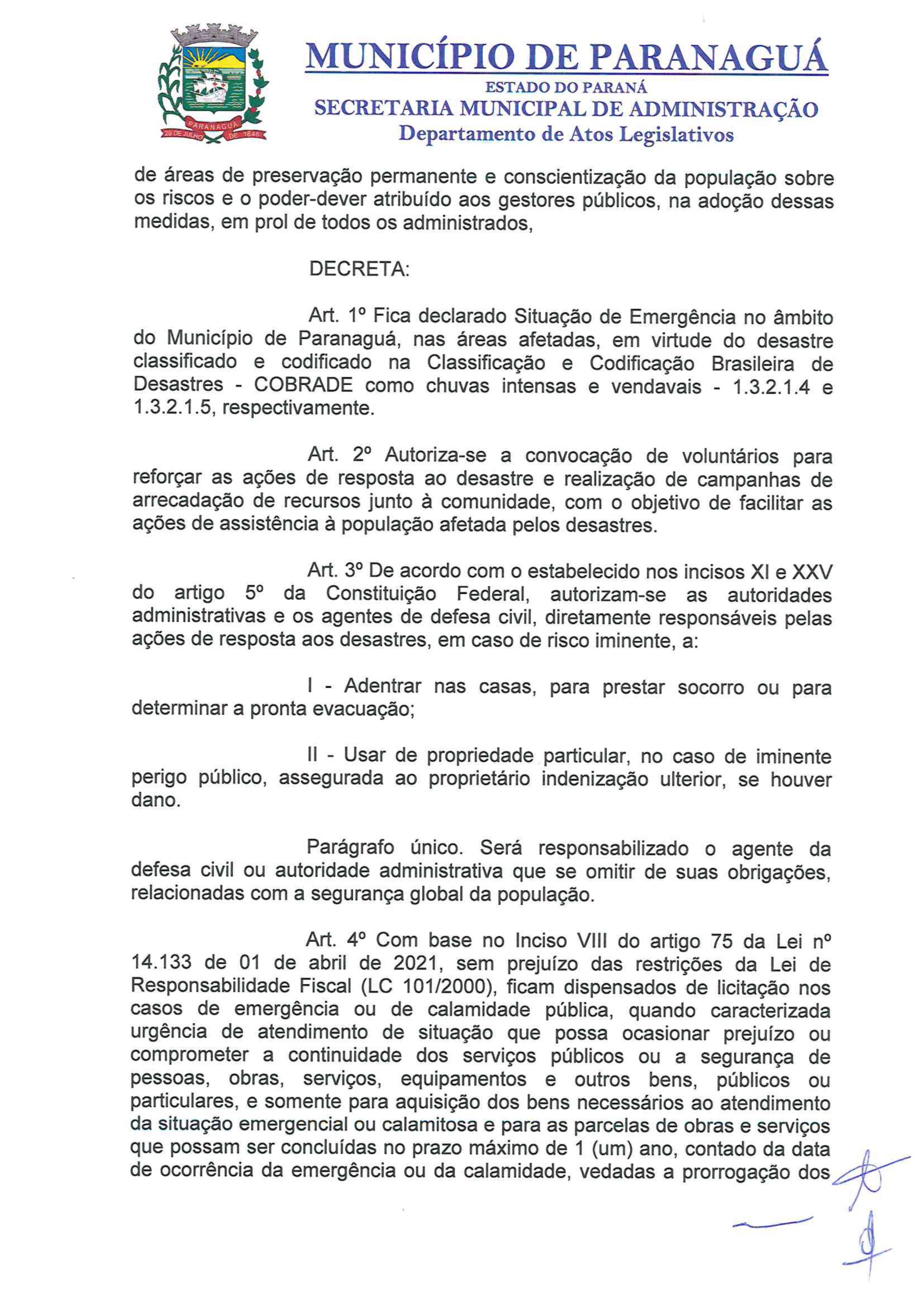 No caso de Paranaguá, a decretação da Situação de Emergência indica que, embora a situação seja grave, o Município ainda possui capacidade de resposta e busca fortalecer suas ações com o apoio de outras esferas governamentais.