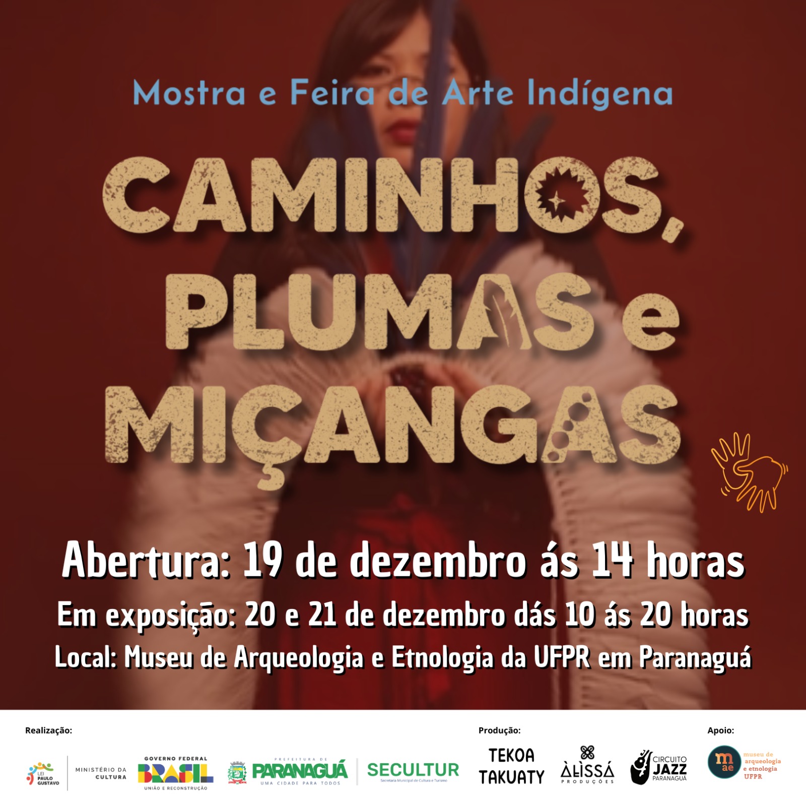 Paranaguá recebe, entre os dias 19 e 21 de dezembro, a Mostra e Feira de Artes Indígenas – Caminhos das Plumas e Miçangas: Memória Ancestral, evento gratuito que celebra e fortalece a cultura Mbya-Guarani no Museu de Arqueologia e Etnologia da UFPR. A programação é aberta a toda a comunidade e reúne exposição, feira de artesanato, roda de conversa e apresentação cultural.