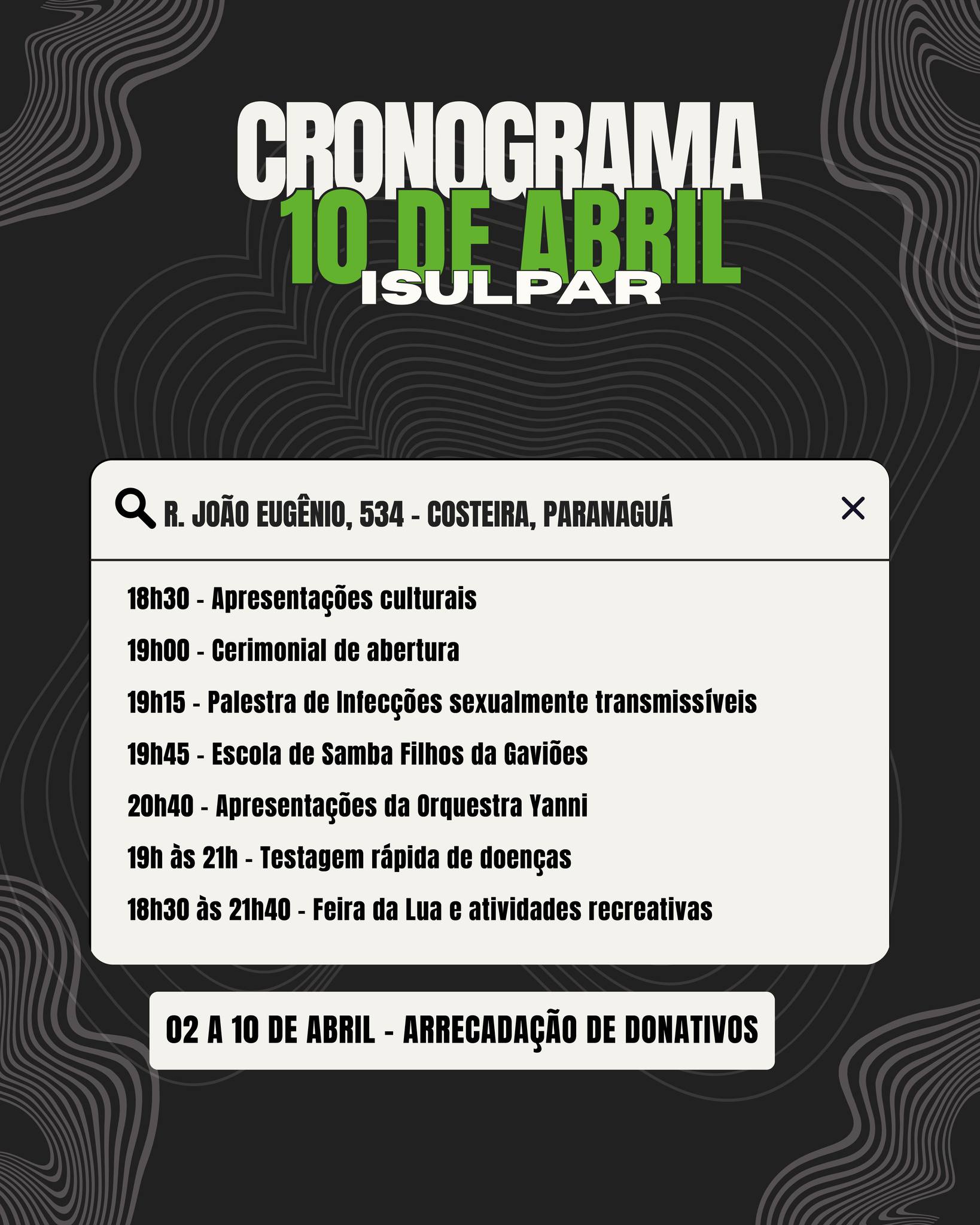 10 de abril – Isulpar (Rua João Eugênio, 534 – Costeira)