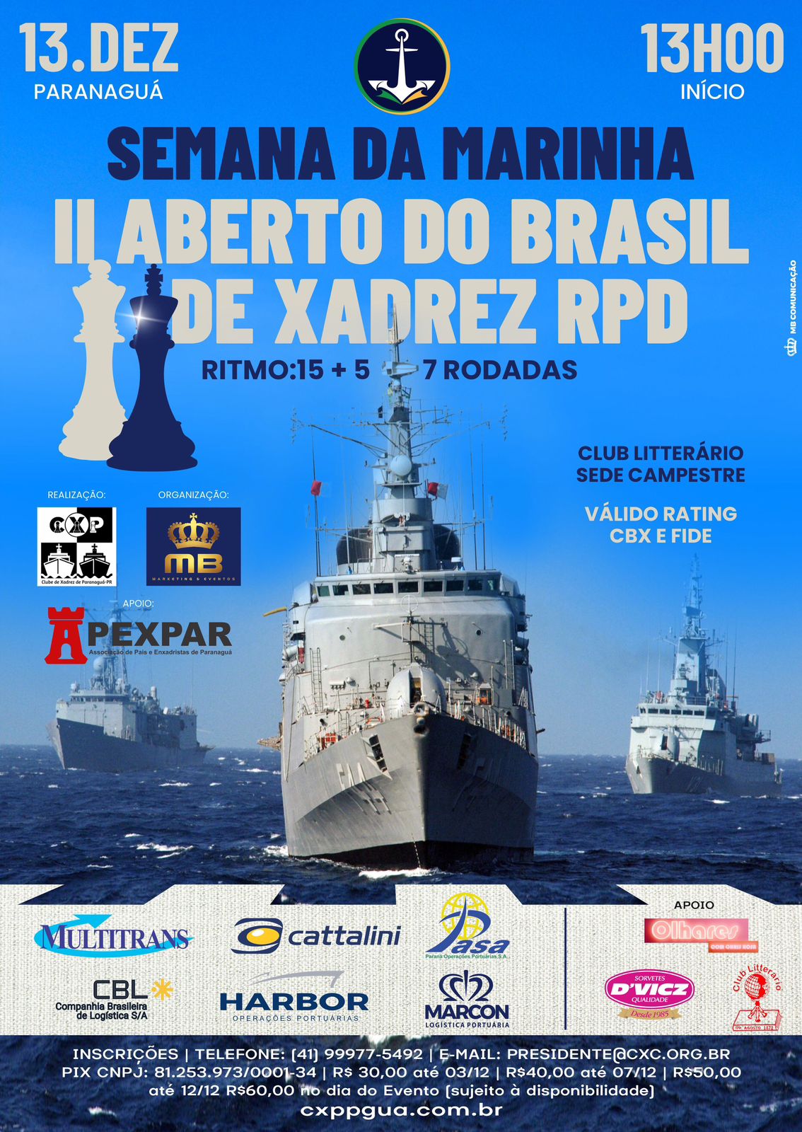 O torneio é uma realização do Clube de Xadrez de Paranaguá e conta com organização da Agência MB Marketing. A programação é aberta ao público, que está convidado a prestigiar e acompanhar de perto as disputas.