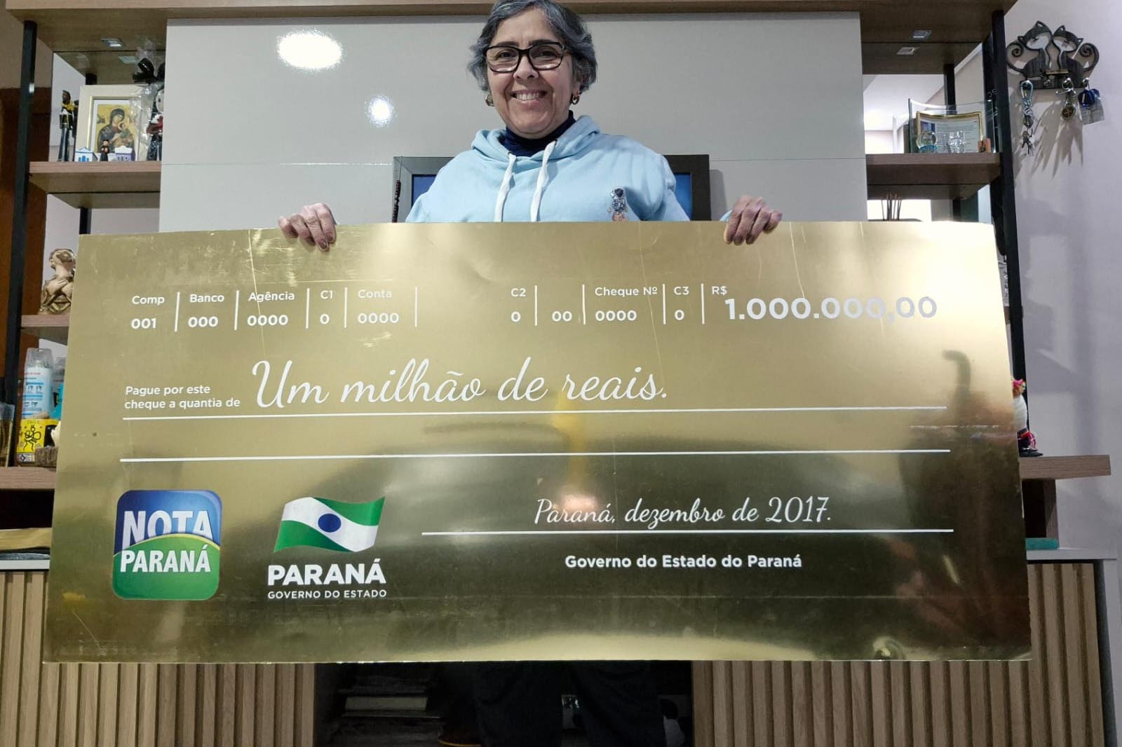 Em dezembro de 2017, a professora Beatriz Cardoso, moradora de Paranaguá, se tornou a primeira ganhadora do prêmio de R$ 1 milhão do programa Nota Paraná, da Secretaria de Estado da Fazenda (Sefa). Mesmo com a fortuna, a educadora de Geografia e História decidiu continuar dando aulas na escola municipal do bairro Porto Seguro, onde atua há 20 anos.