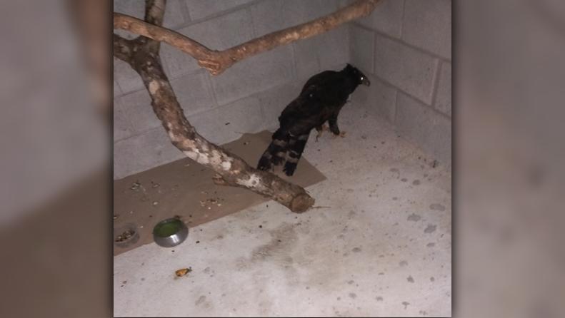 Debilitado, o Gavião-Pega-Macaco foi encontrado por um morador da localidade conhecida com KM18.