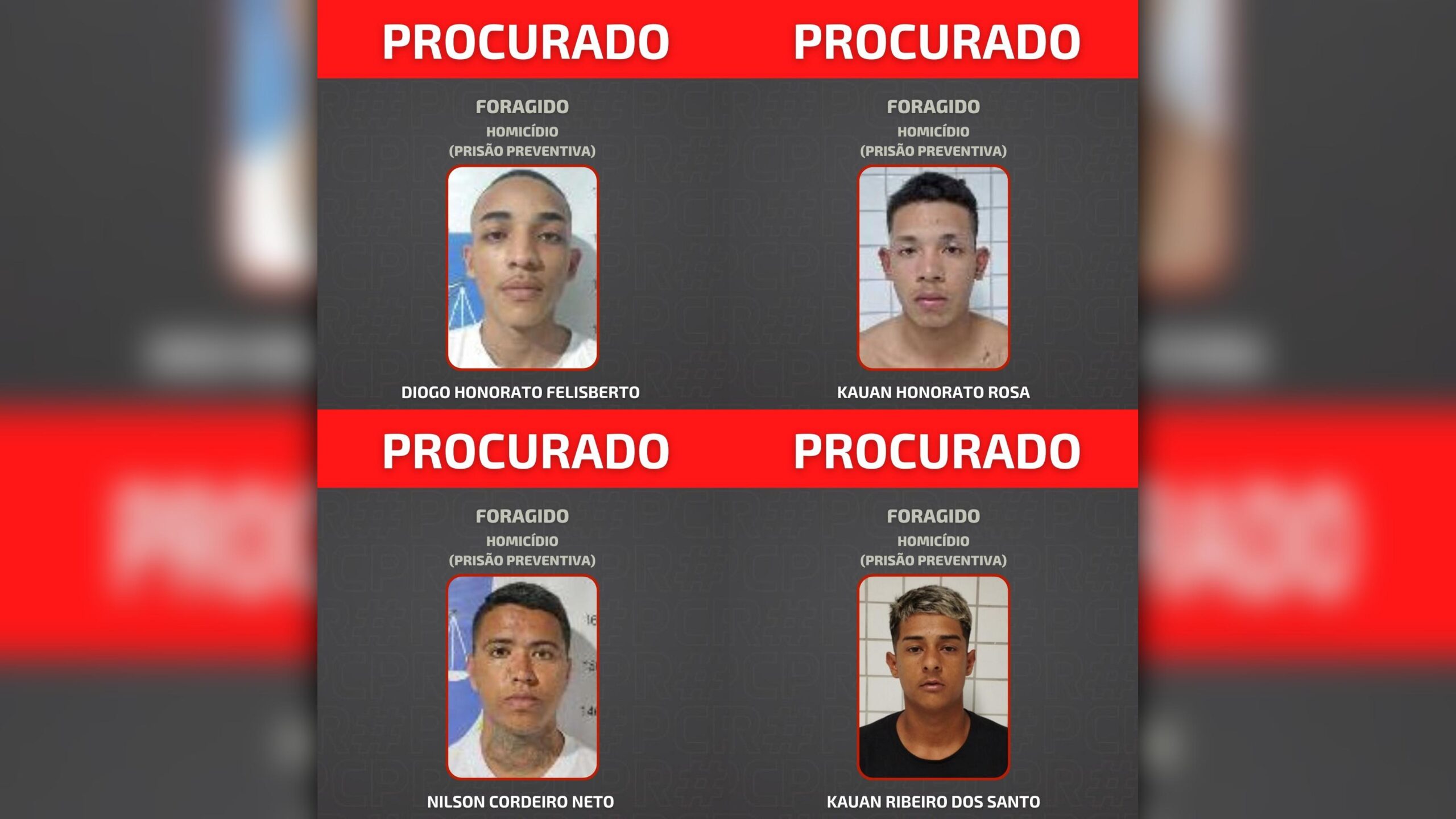 A Polícia Civil divulgou nesta quinta-feira, 5, fotos de quatro foragidos, três deles de 20 anos e um de 19 anos, por crimes distintos ocorridos em Paranaguá.