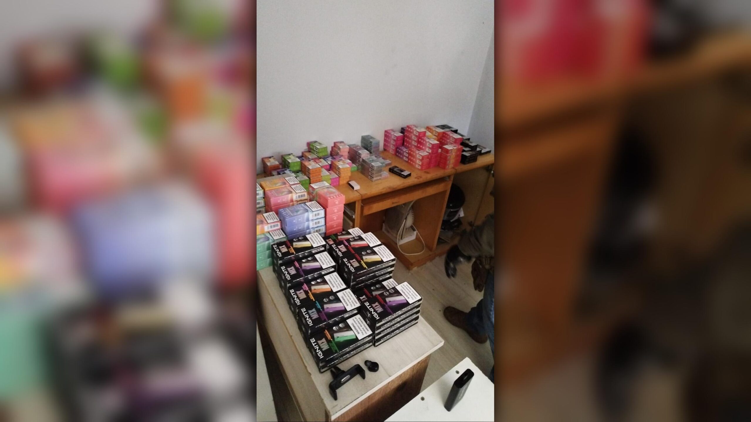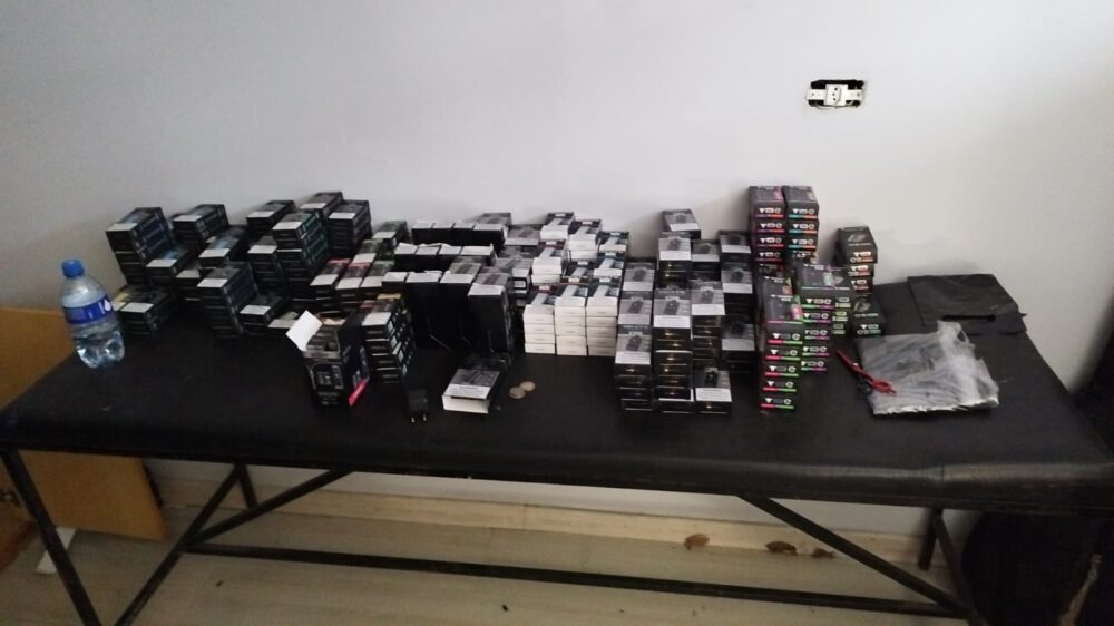 Foram apreendidos 820 cigarros eletrônicos avaliados em cerca de R$ 70 mil, anabolizantes, munições, máquinas de cartão e a carteira de habilitação do líder do grupo