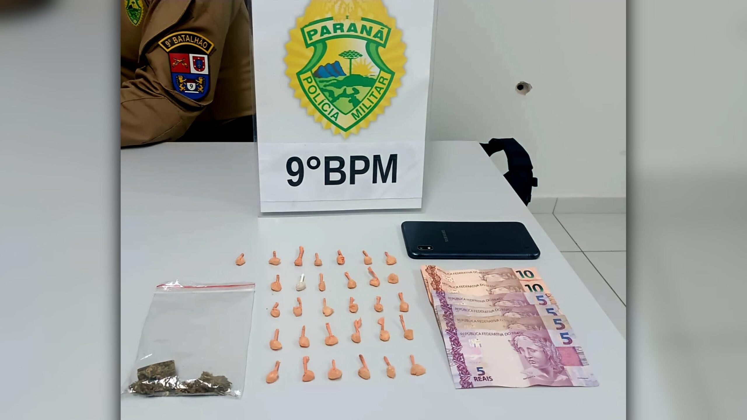 Perseguida e abordada, com ela foram encontradas pedras de crack, que estavam dentro de uma carteira de cigarros, um cachimbo, uma bucha de maconha, um aparelho celular e dinheiro trocado.