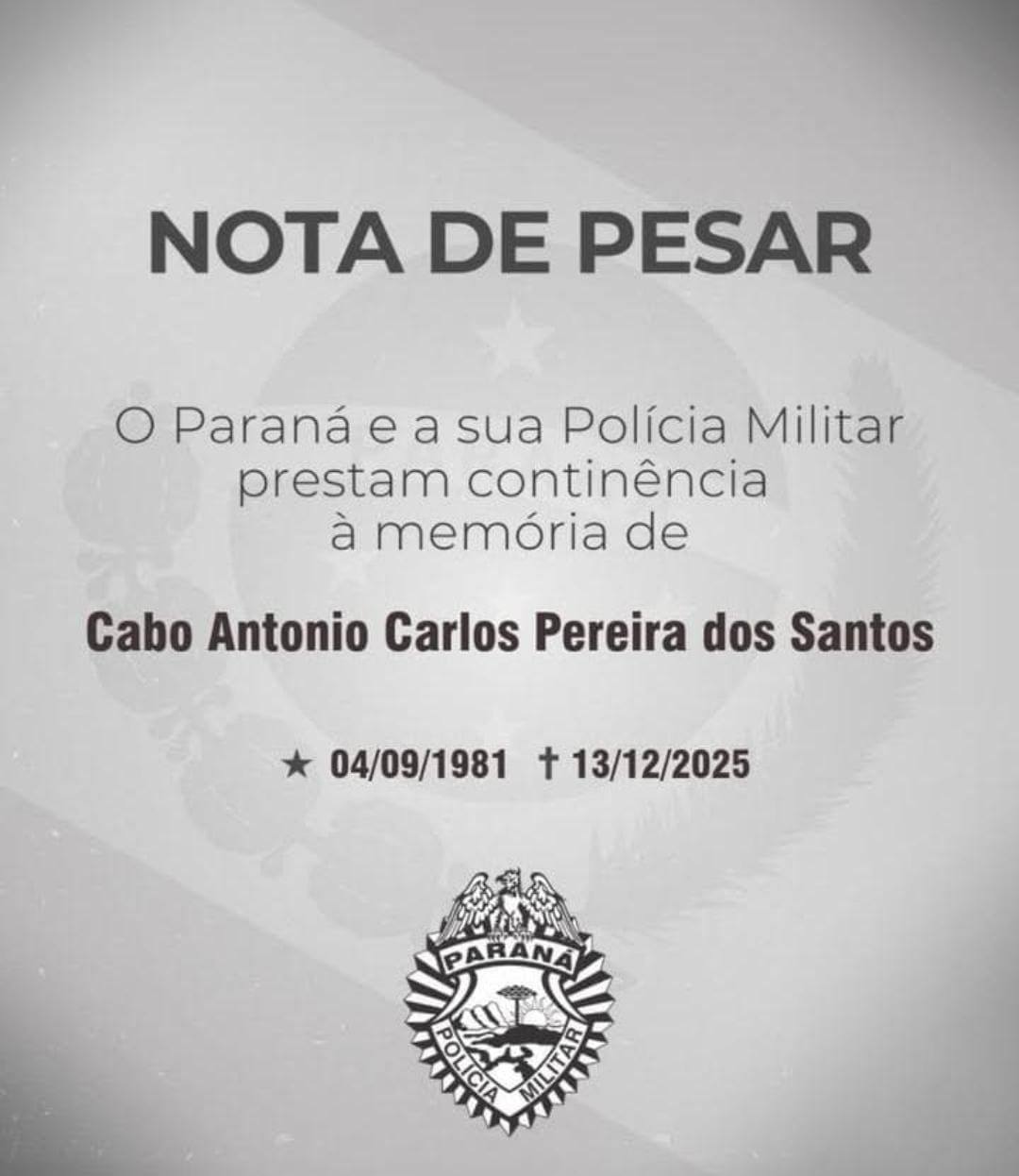 O Cabo Antonio Carlos Pereira dos Santos, de 44 anos, da Companhia Independente de Rondas Ostensivas com Aplicação de Motocicletas (CIROCAM), da Polícia Militar, envolvido em um grave acidente de trânsito na BR-277, em Morretes, na tarde de sexta-feira, 12, morreu no Hospital Cajuru, onde estava internado.