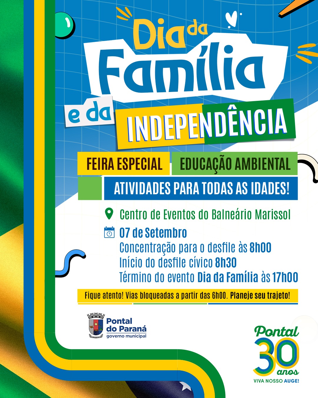 O feriado da Independência do Brasil, no domingo 7, será marcado em Pontal do Paraná por um dia de celebrações que incluem o Desfile Cívico-Militar e a programação especial do Dia da Família.