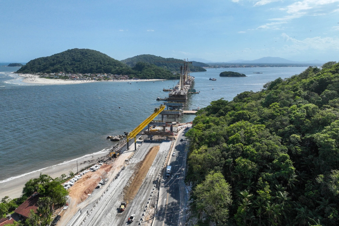 A construção da Ponte de Guaratuba encerrou o ano de 2025 com um índice de execução de 88%, o que aponta a reta final do empreendimento, com previsão de entrega para o mês de abril. Segundo o boletim técnico de dezembro, a obra avançou em todas as frentes de trabalho, com destaque para a finalização completa da infraestrutura e progressos expressivos no trecho estaiado, que se tornará o cartão-postal da região.