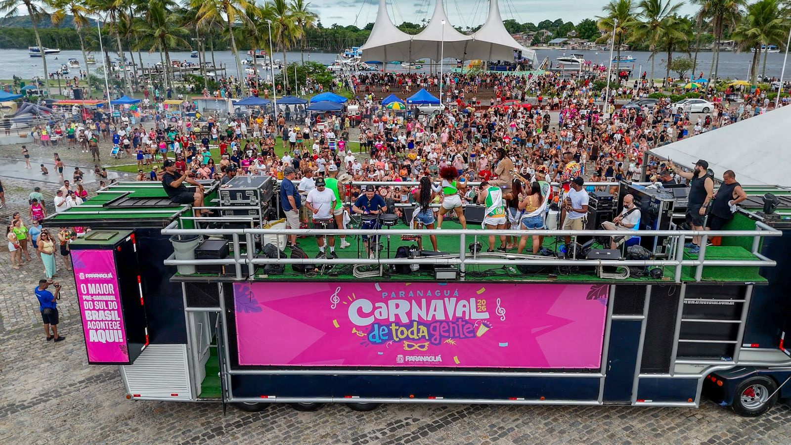 E não parou por aí. No sábado, 7, o Pré-Carnaval de Paranaguá contou com dois shows nacionais. Ao som do grupo Tchakabum, um trio elétrico percorreu as ruas da cidade e reuniu milhares de foliões, saindo da Rua Júlia da Costa e finalizando na Praça de Eventos. Logo após, a festa continuou com um palco flutuante às margens do Rio Itiberê, onde o cantor Reinaldinho animou o público.